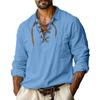 Camisa de manga larga de algodón y lino para hombre, color liso, con solapa y cuello, talla europea, para jóvenes, comercio exterior transfronterizo de Amazon