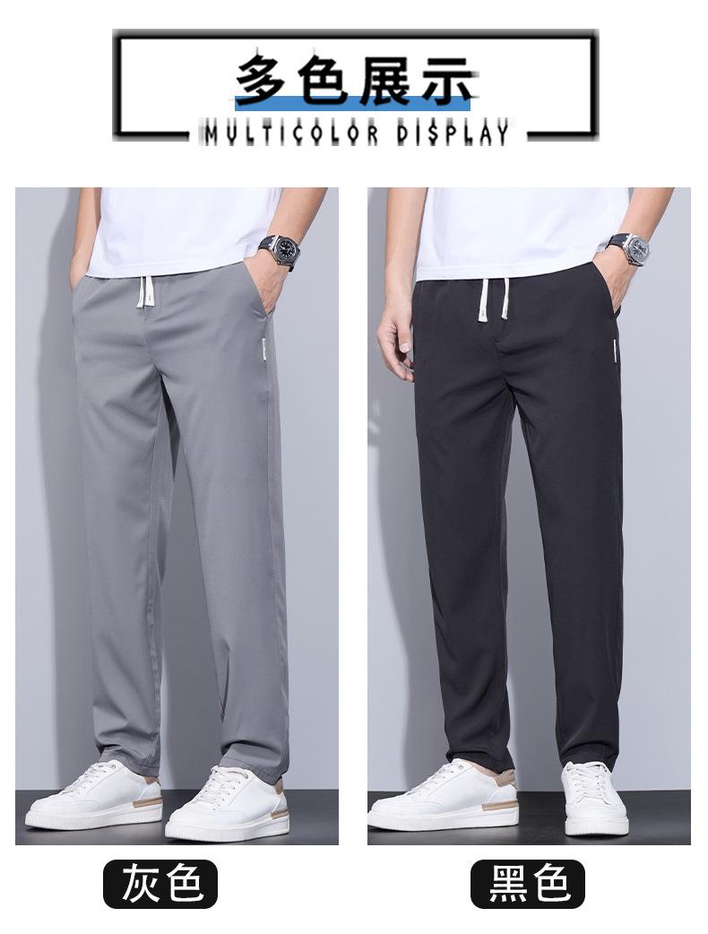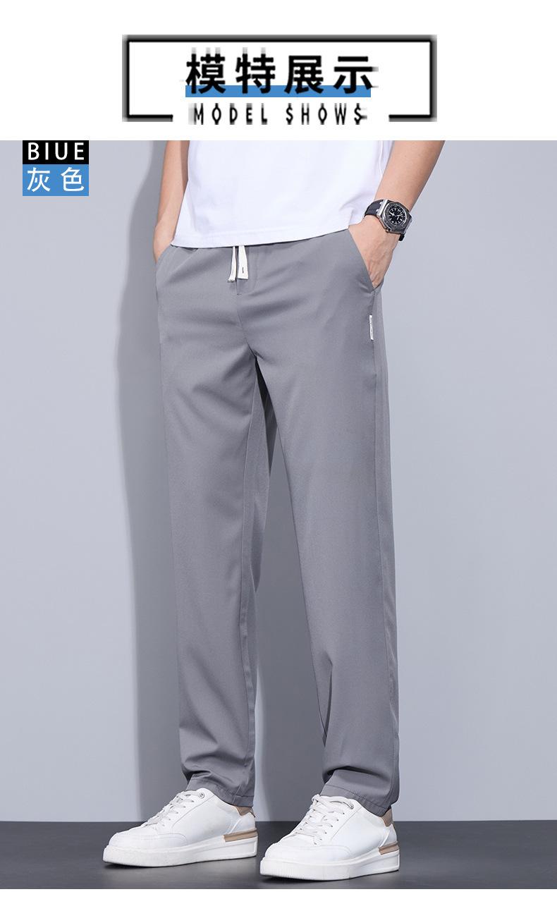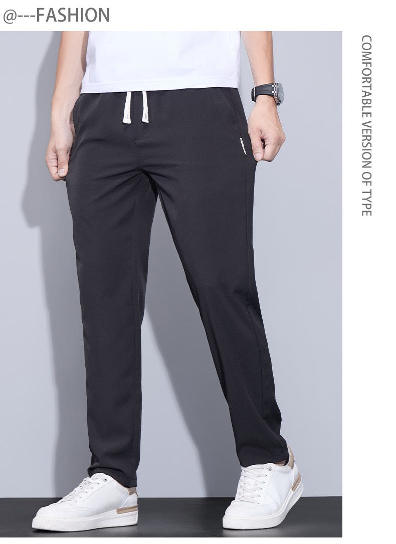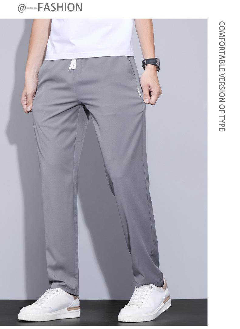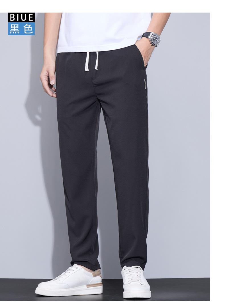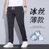 Pantalones casuales finos de seda de hielo para hombre, verano 2024, con cordón, rectos, modernos, combinables, de secado rápido, pantalones deportivos casuales para hombre