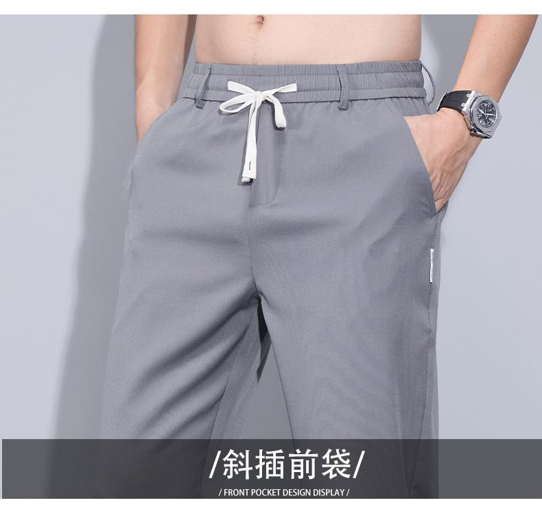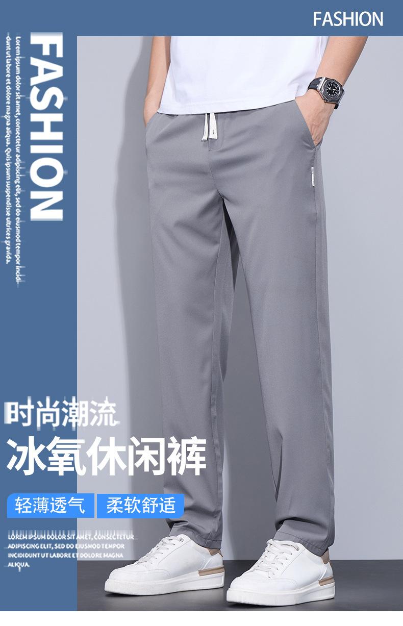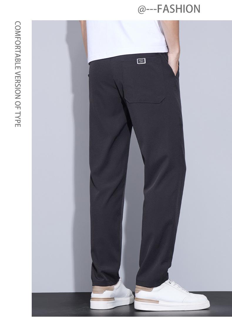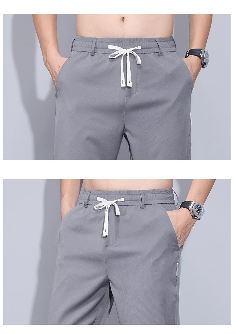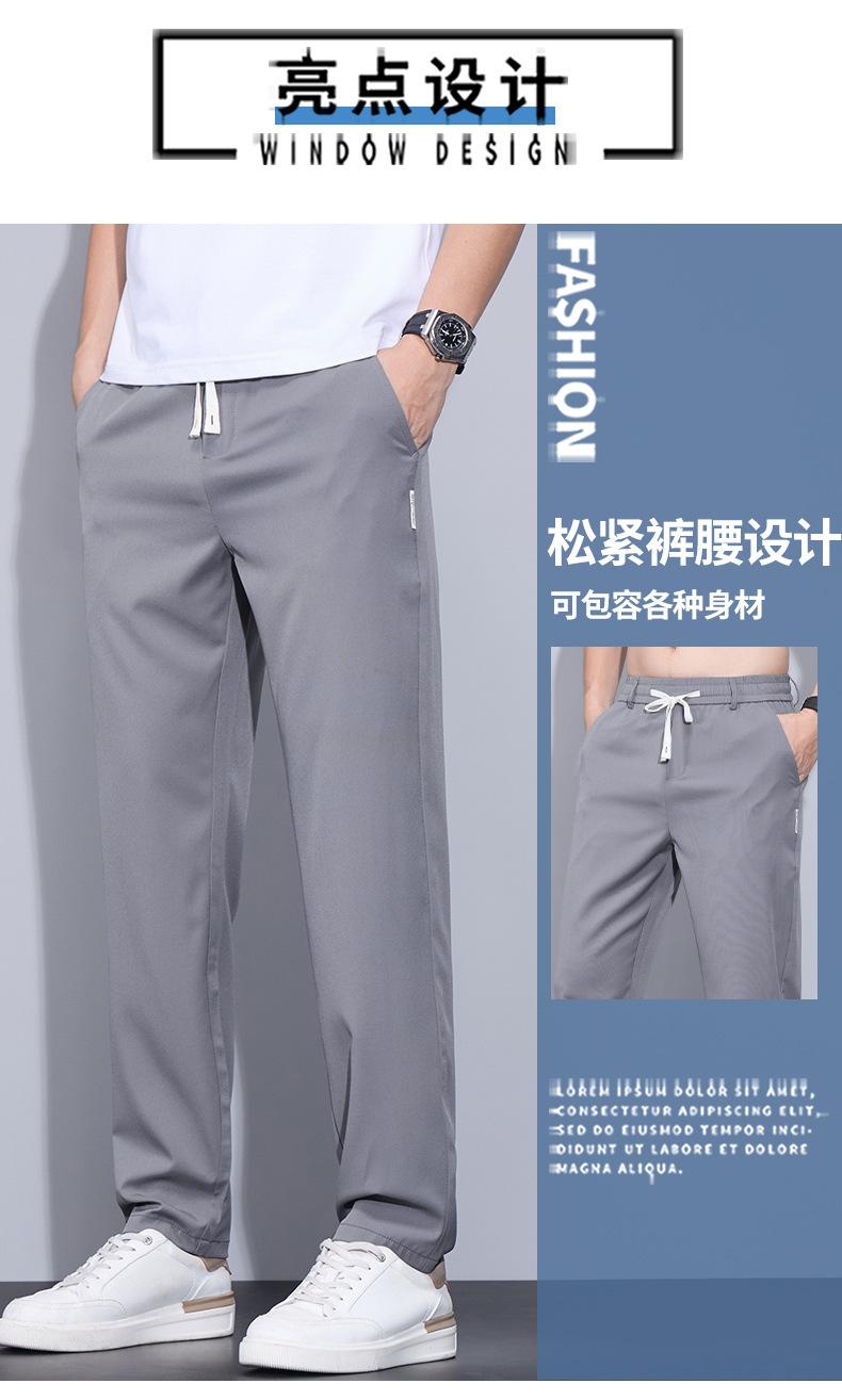 Pantalones casuales finos de seda de hielo para hombre, verano 2024, con cordón, rectos, modernos, combinables, de secado rápido, pantalones deportivos casuales para hombre