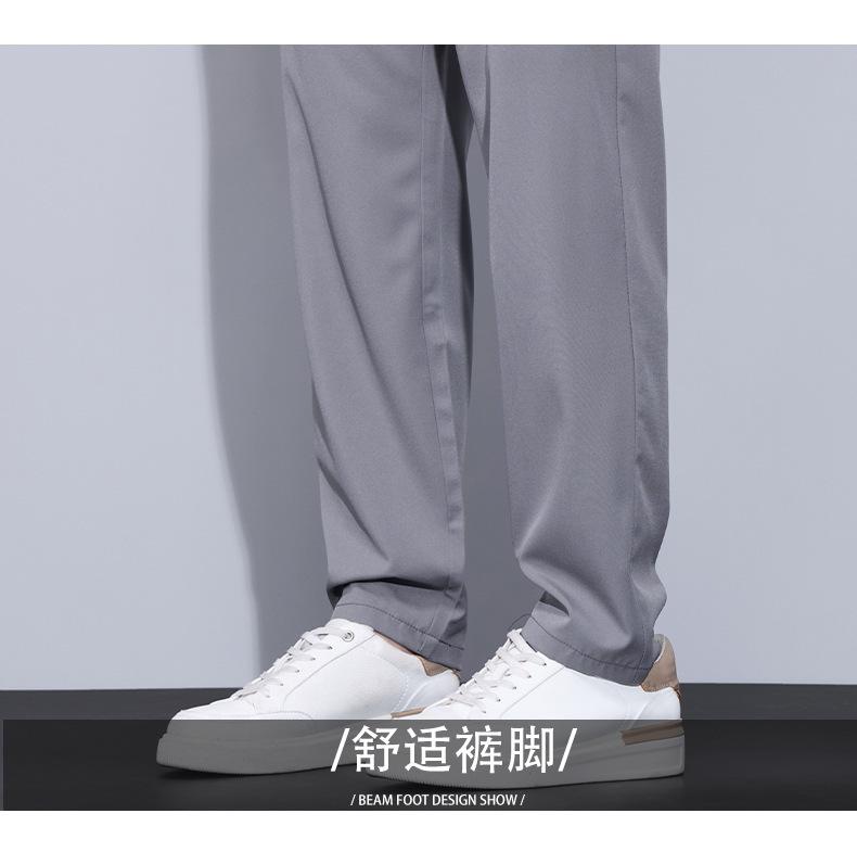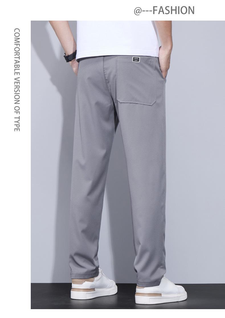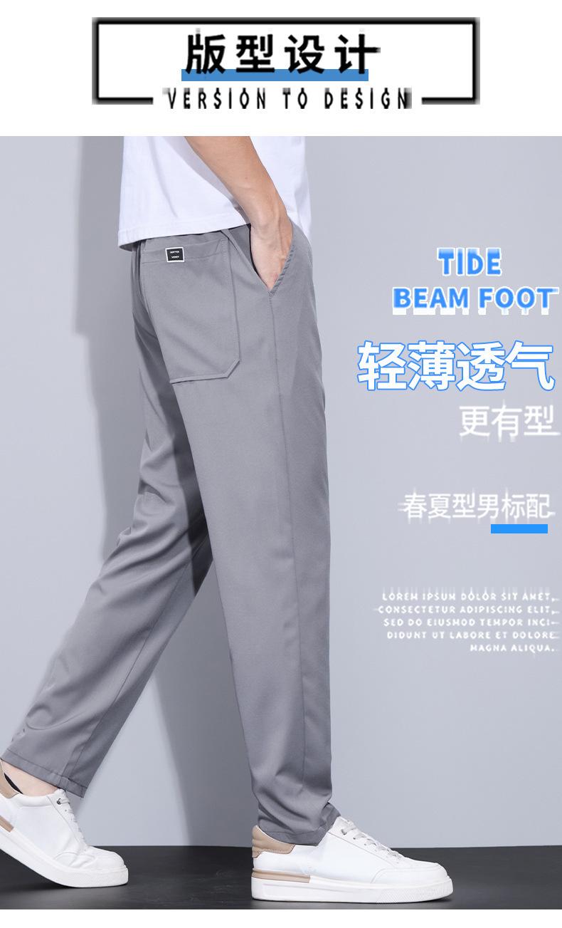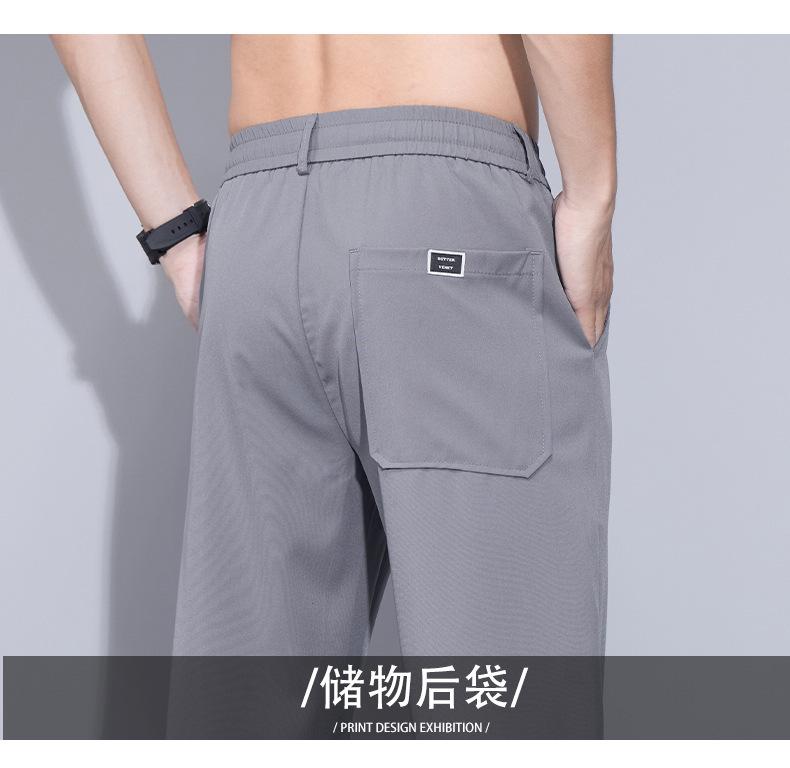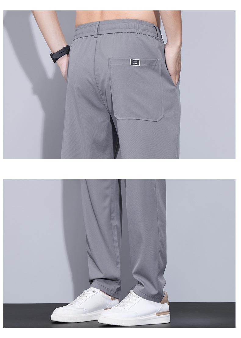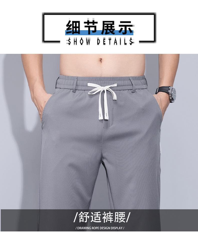 Pantalones casuales finos de seda de hielo para hombre, verano 2024, con cordón, rectos, modernos, combinables, de secado rápido, pantalones deportivos casuales para hombre