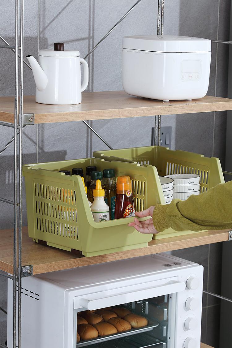 Estante de almacenamiento apilado tipo estantería de suelo para el hogar, cesta de almacenamiento, estante hueco de plástico para dormitorio, estante para guardar refrigerios