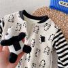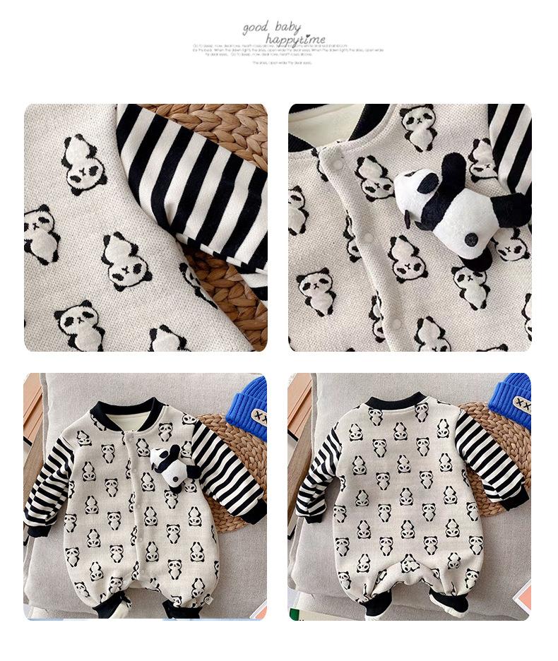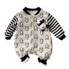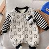 Venta al por mayor de monos de bebé, moda de otoño e invierno para bebés, ropa de escalada con rayas de dibujos animados para niños y niñas, monos de bebé para salir.