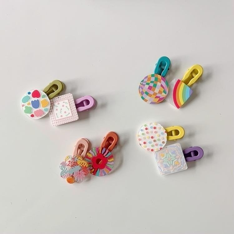 Horquilla de acrílico con diseño geométrico a juego para niña, estilo coreano, con clip lateral, accesorios de planeta arcoíris y corazón