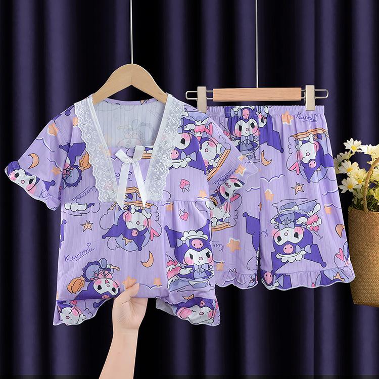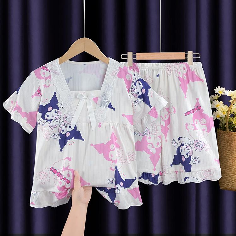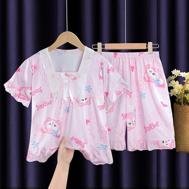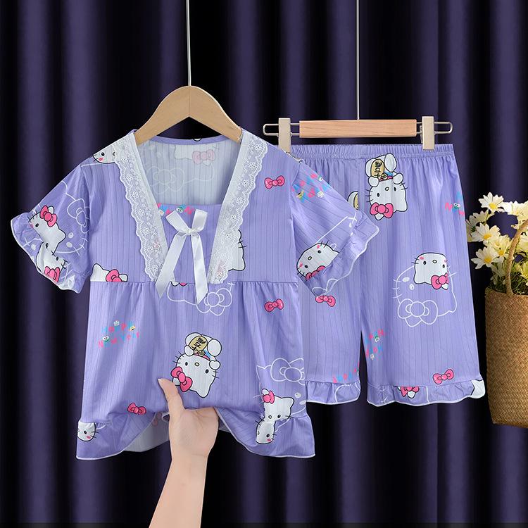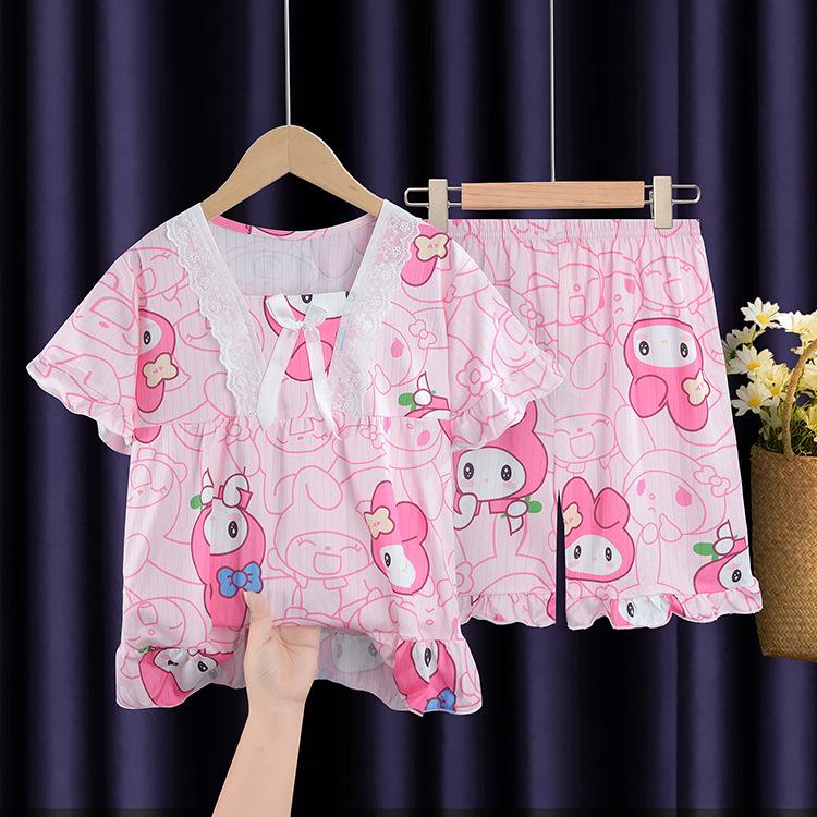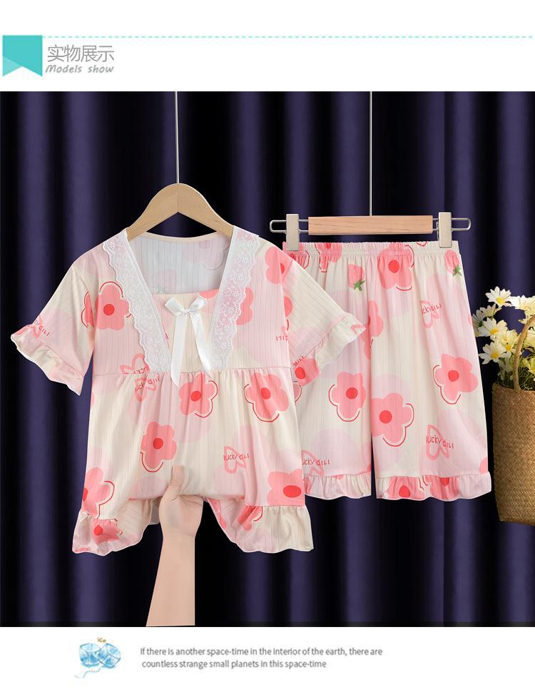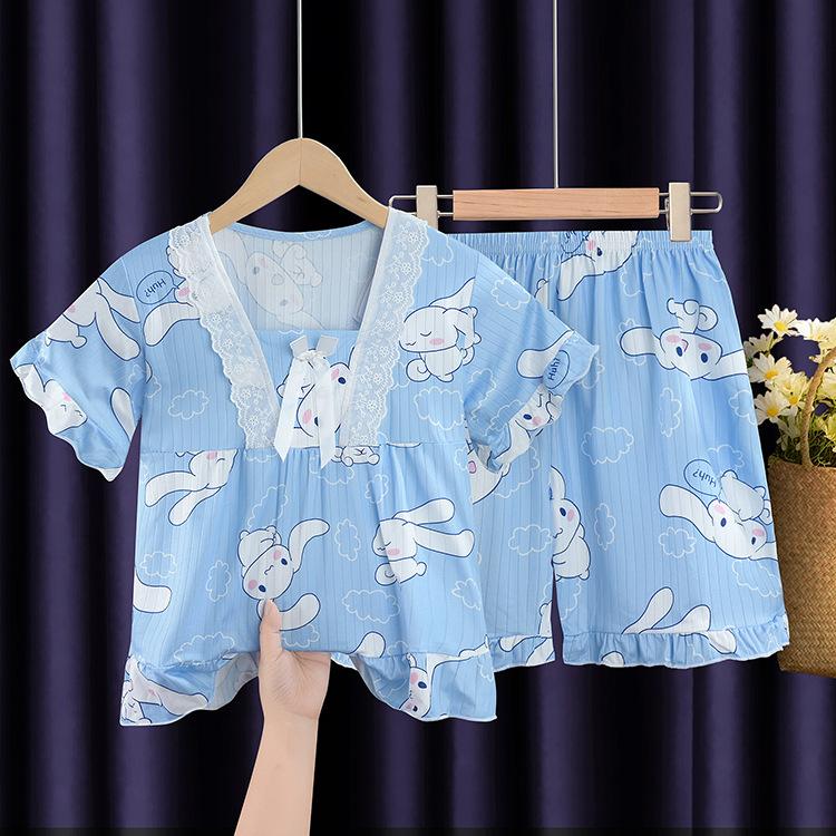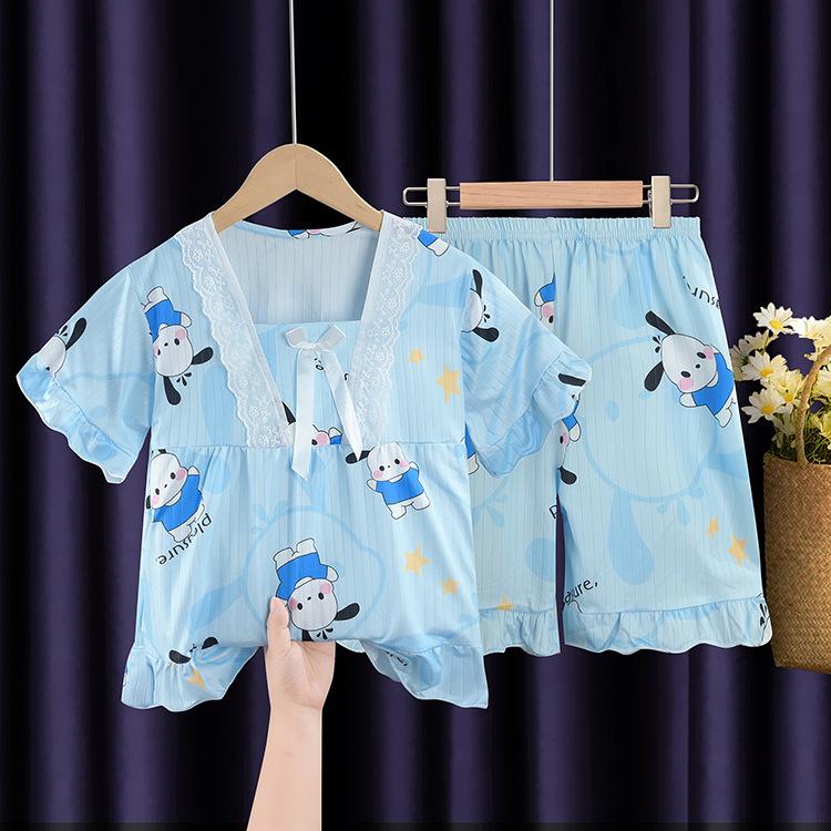 Compra Pijamas infantiles de verano estilo princesa de dibujos animados de manga corta finos para niñas bebés medianas y grandes niños aire acondicionado conjunto de ropa para el hogar al por mayor en Joom.pro