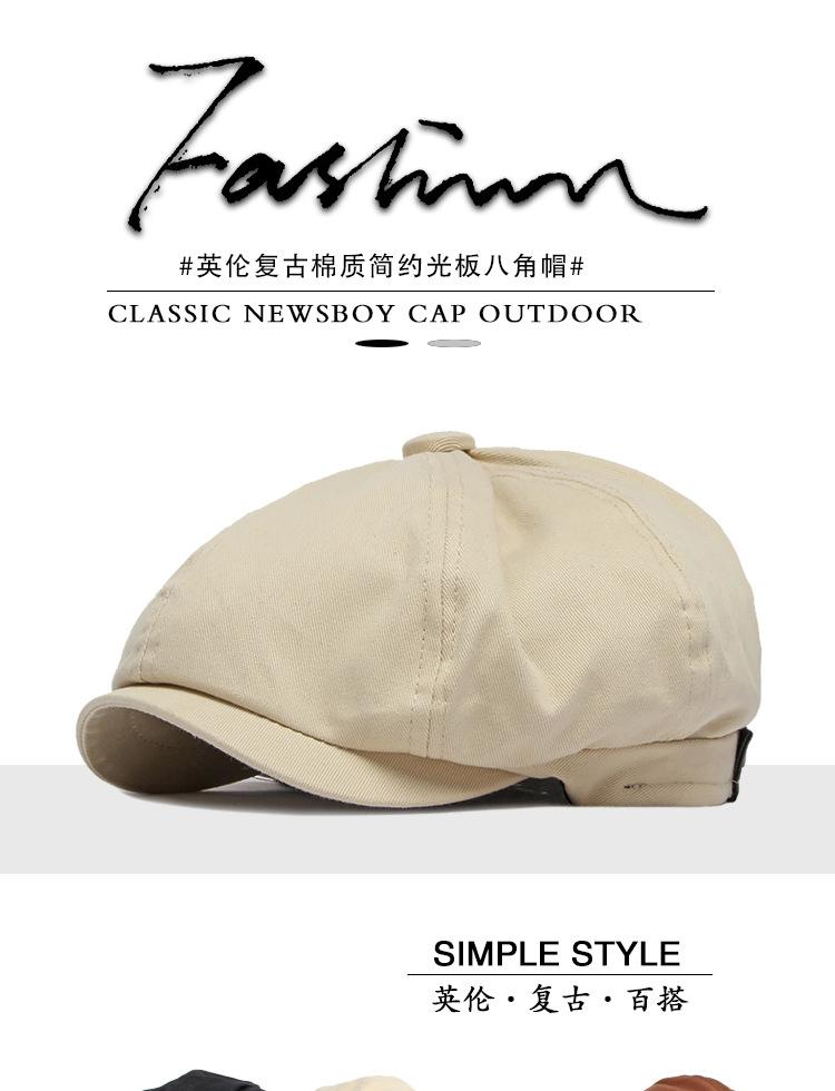 Gorra transfronteriza al por mayor, gorra sencilla con placa ligera, gorra octogonal ajustable para hombres y mujeres, gorra de vendedor de periódicos vintage británica, marea