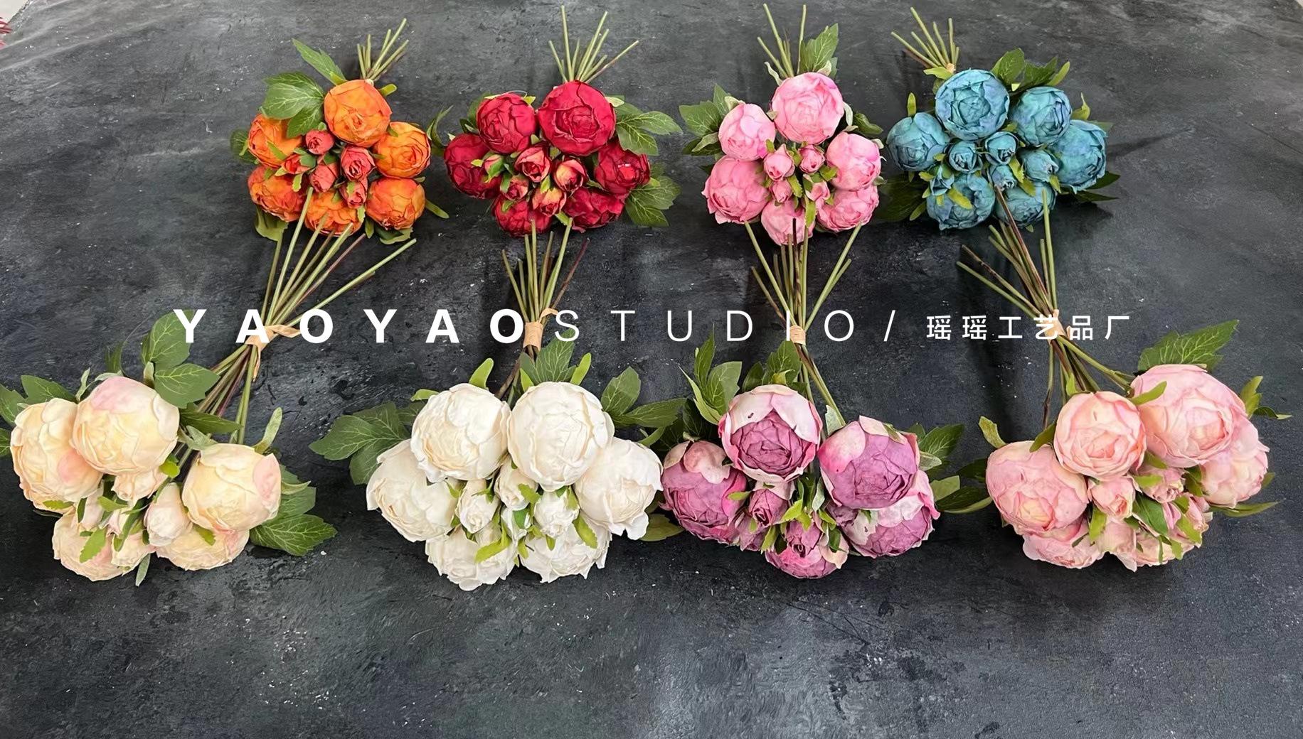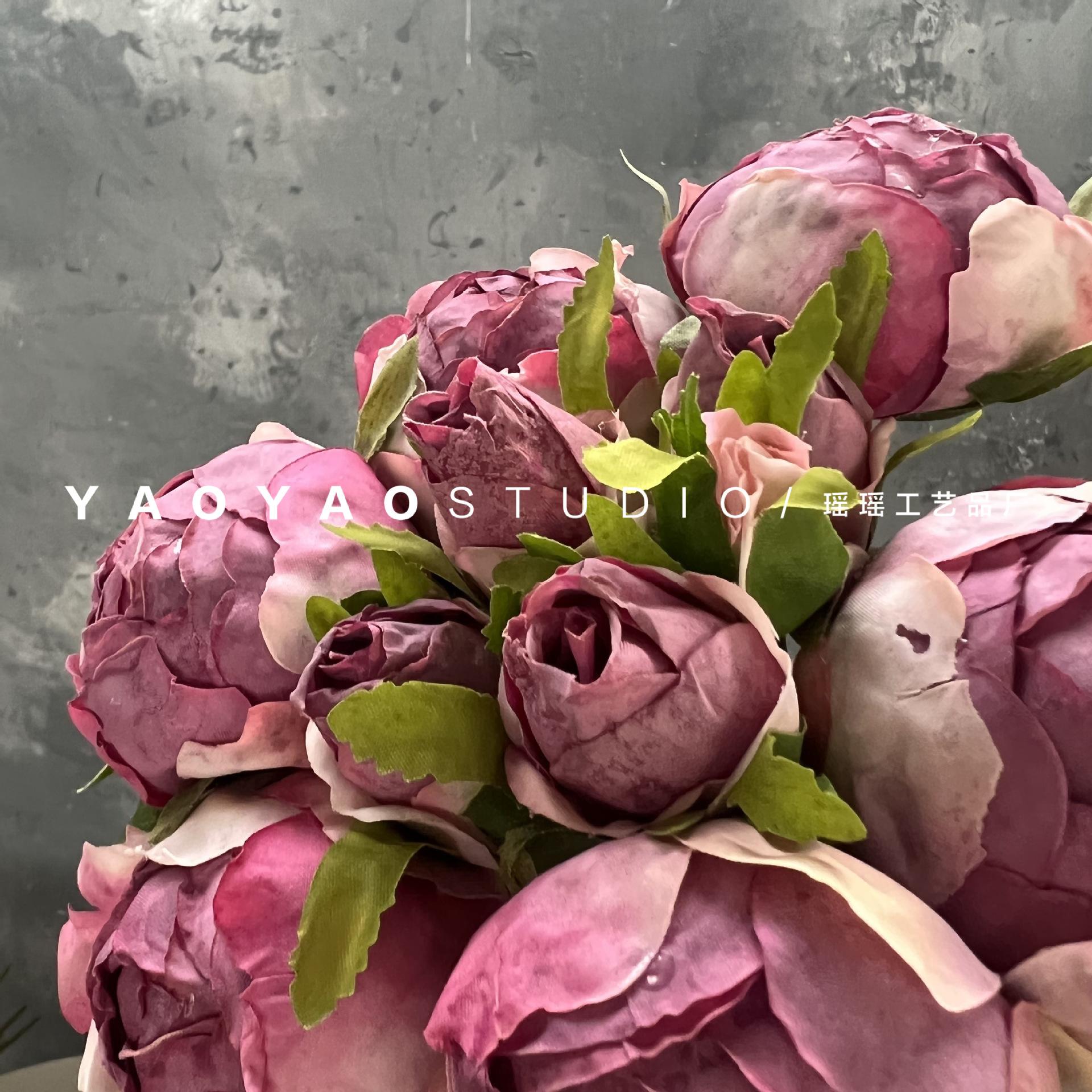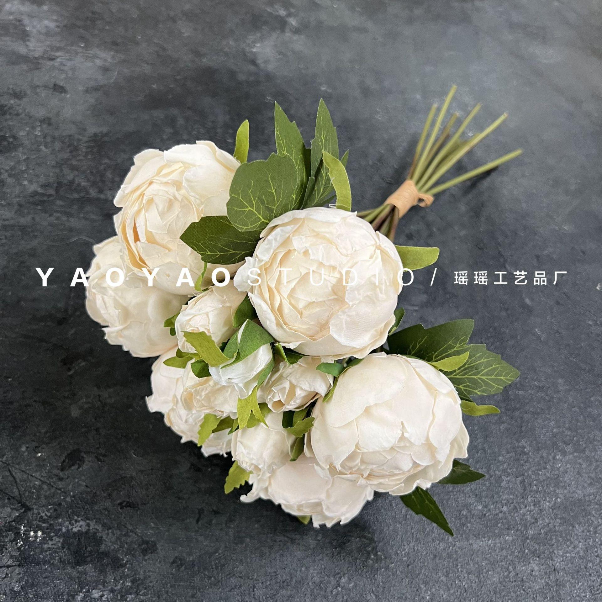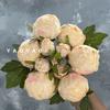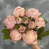 Simulación del manojo de 11 capullos de peonía horneados con bordes secos, rosas, decoración del hogar, flores de seda, accesorios de fotografía de flores de peonía