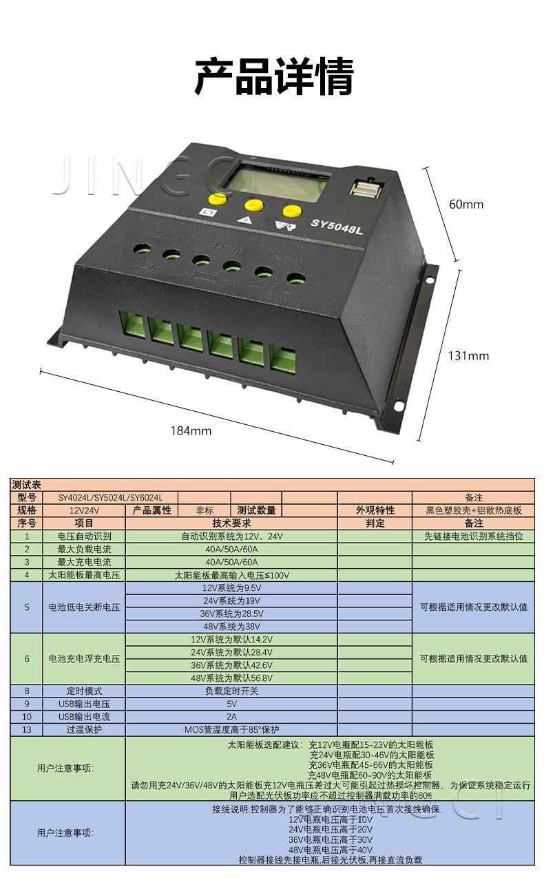 Controlador solar fotovoltaico PWM 40A50A60A identificación automática 12V24V36V48V controlador de carga y descarga