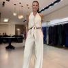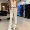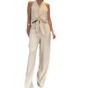 Pantalones anchos de color liso sin mangas con cuello en V para mujer, de Amazon, para verano, 2024, comercio exterior transfronterizo entre Europa y América
