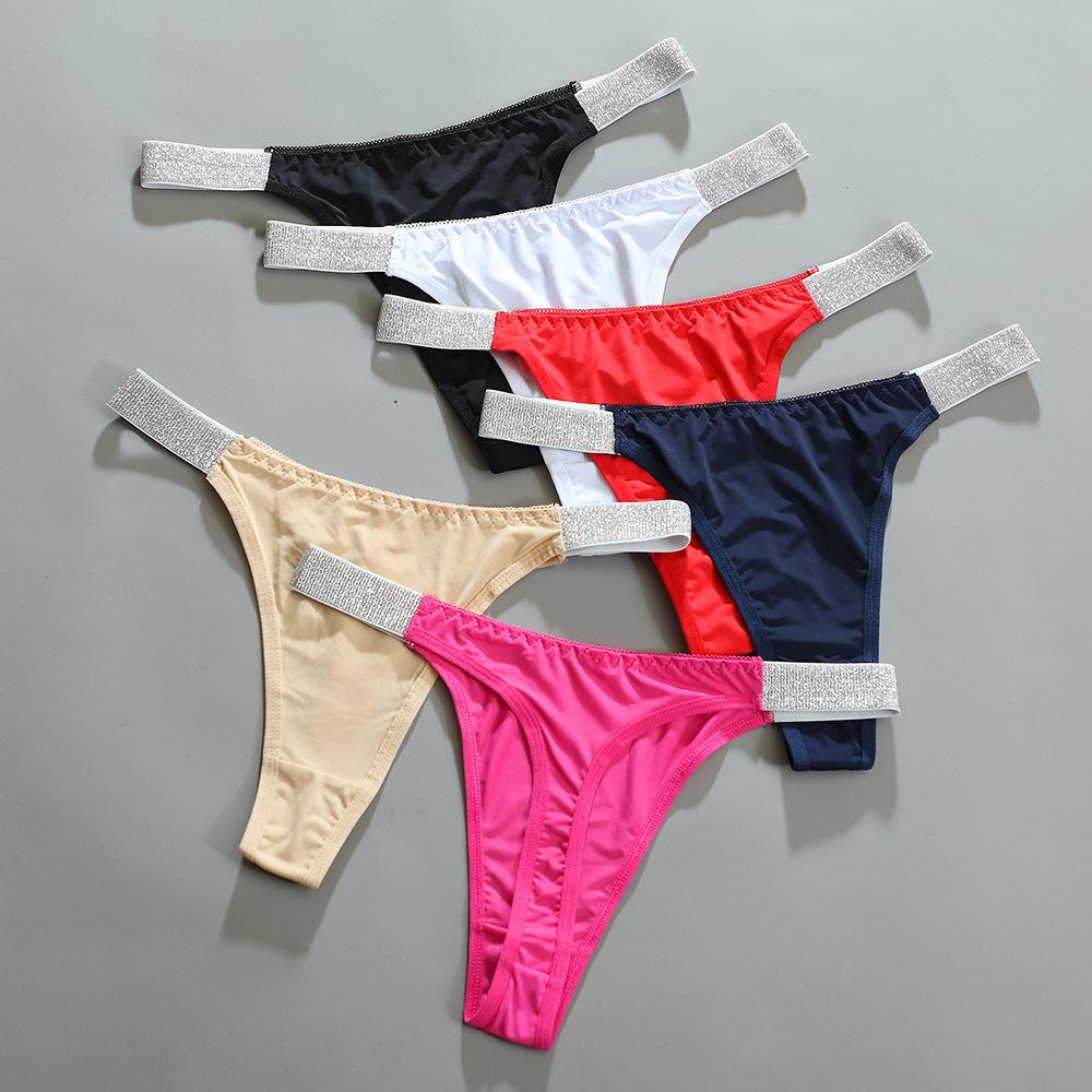 Tanga de mujer con cinturón brillante, bikini sexy que levanta la cadera, ropa interior de cintura media, pantalones deportivos de fitness para mujer