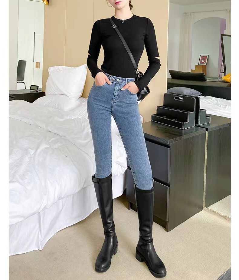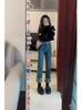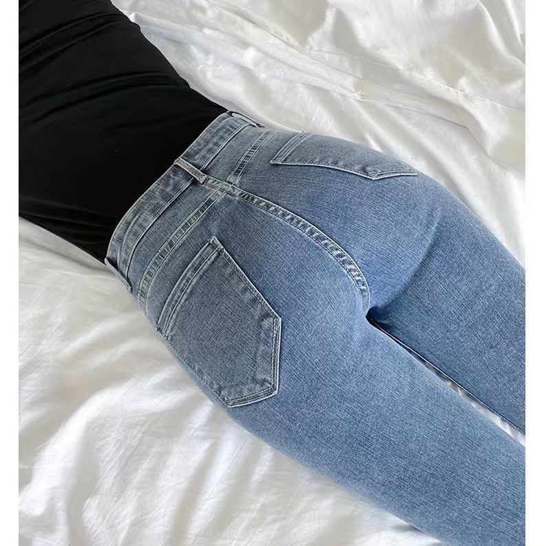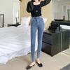 Pantalones vaqueros de cintura alta para mujer, ajustados, combinables, de color claro, estilo coreano, de moda, ajustados y elásticos, 2024