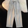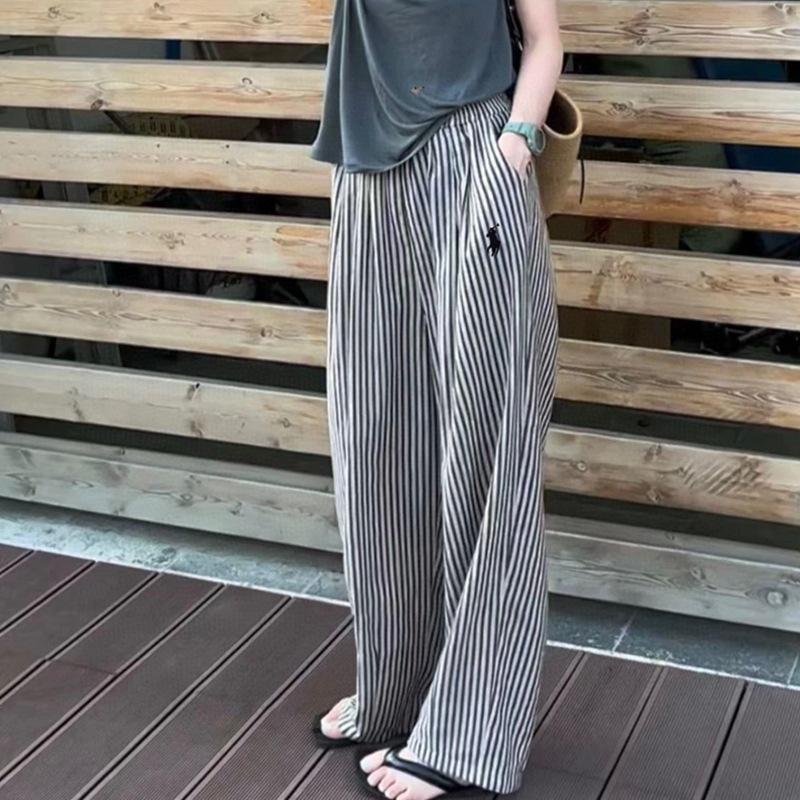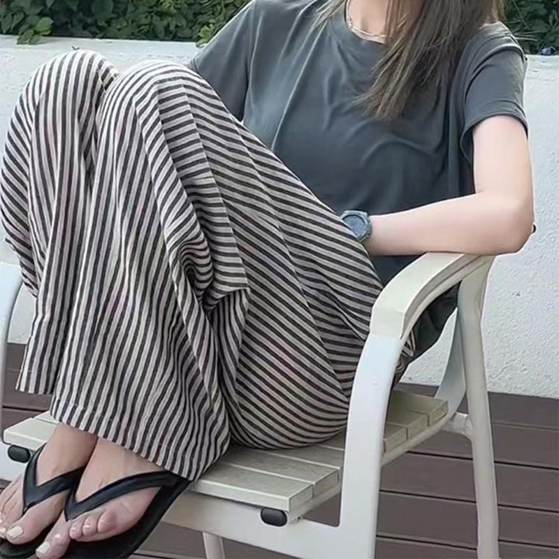 Pantalones de pierna ancha y finos a rayas para mujer, nuevos pantalones de verano de estilo coreano a la moda, pantalones casuales de pierna recta, pantalones adelgazantes de cintura alta y talla grande.