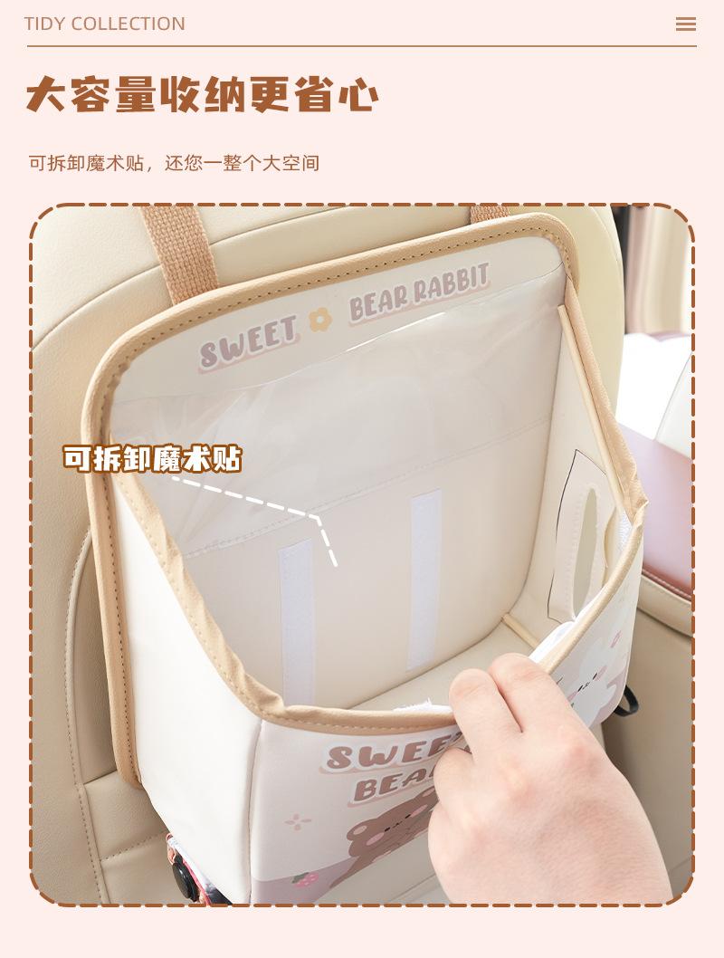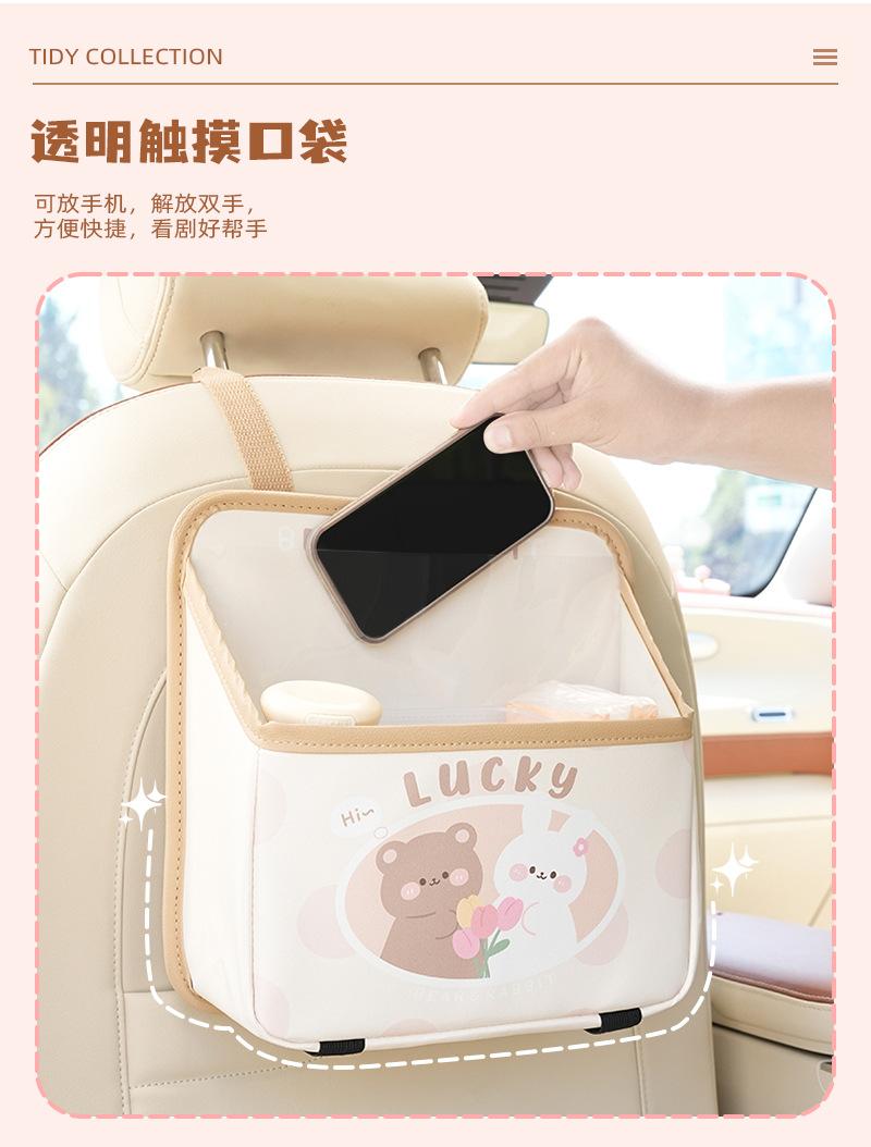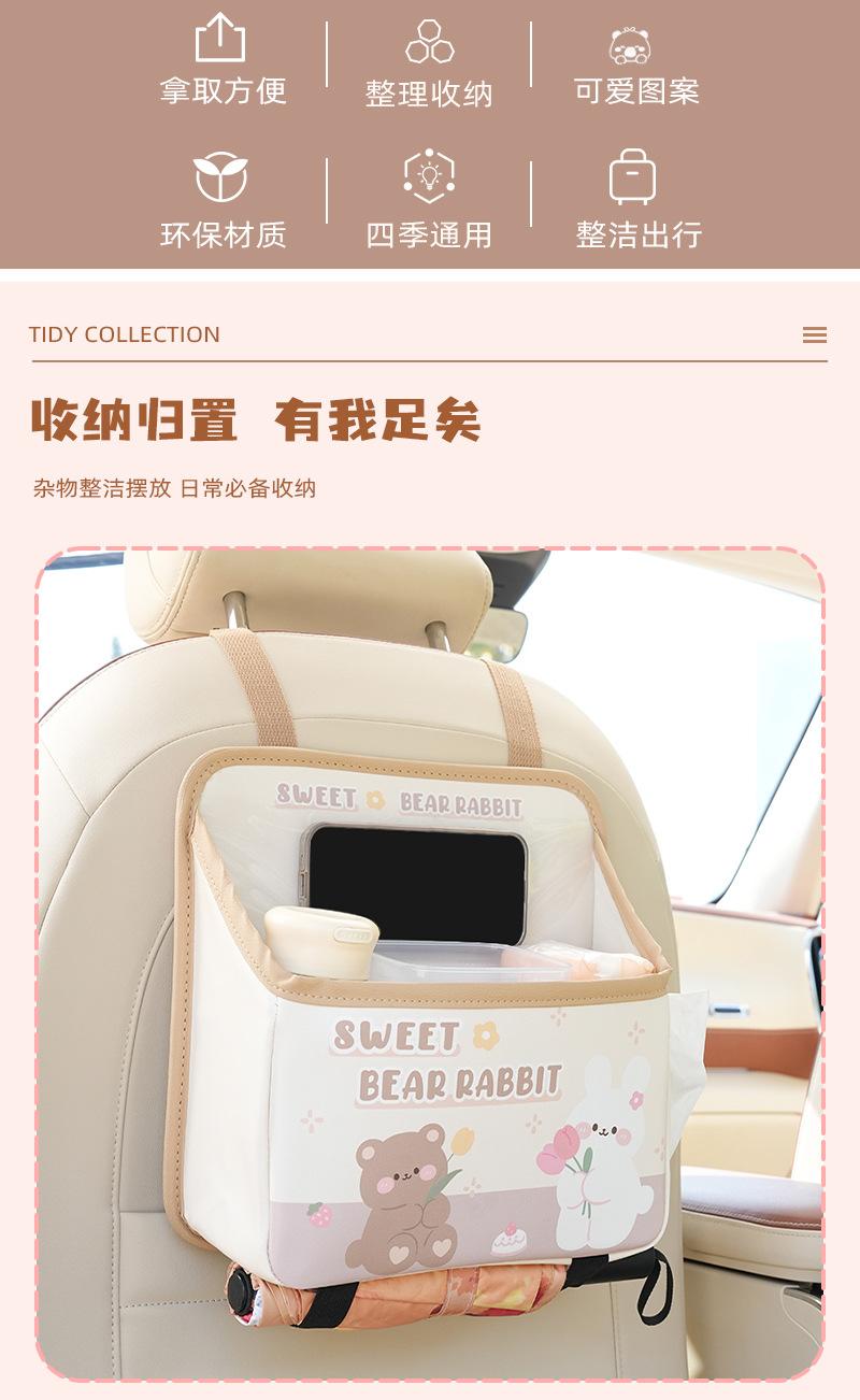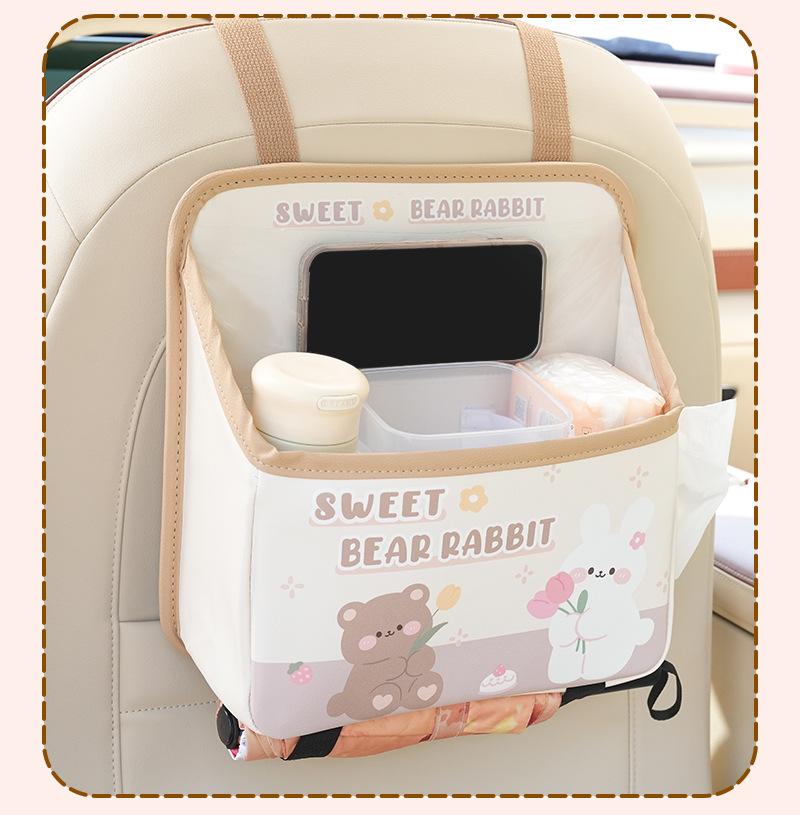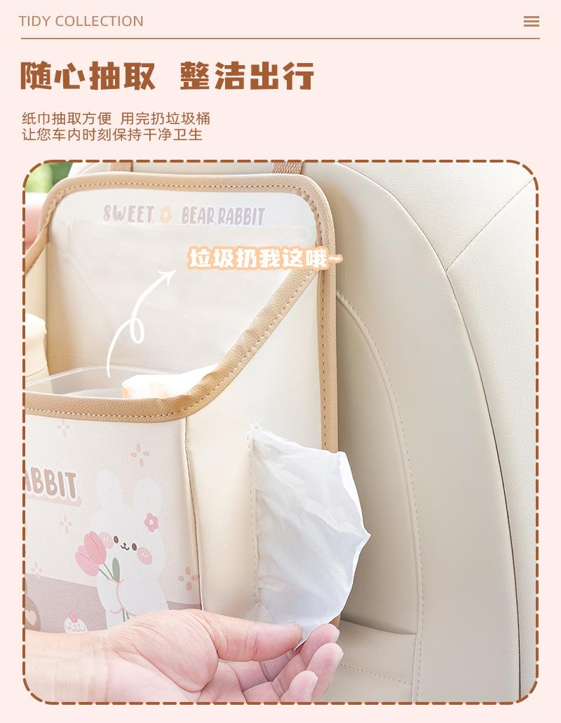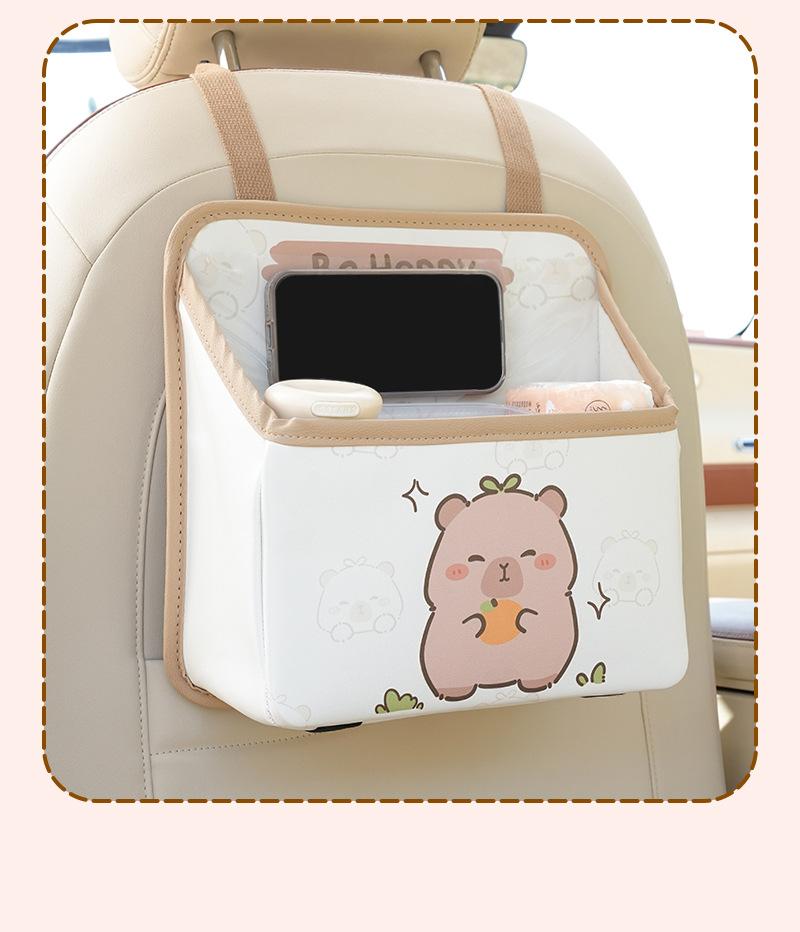 Bolsa de almacenamiento para el respaldo del asiento de coche de dibujos animados, bolsa creativa para guardar cajas de pañuelos de coche, papelera de coche multifuncional de cuero