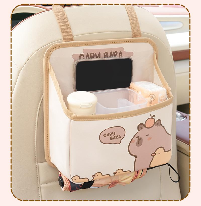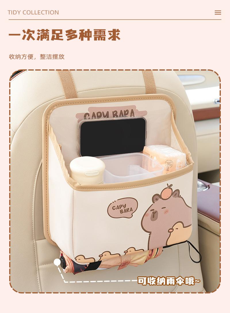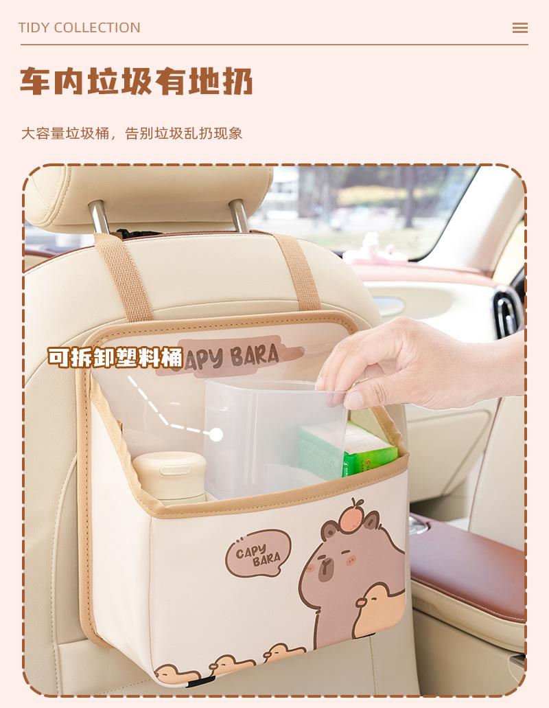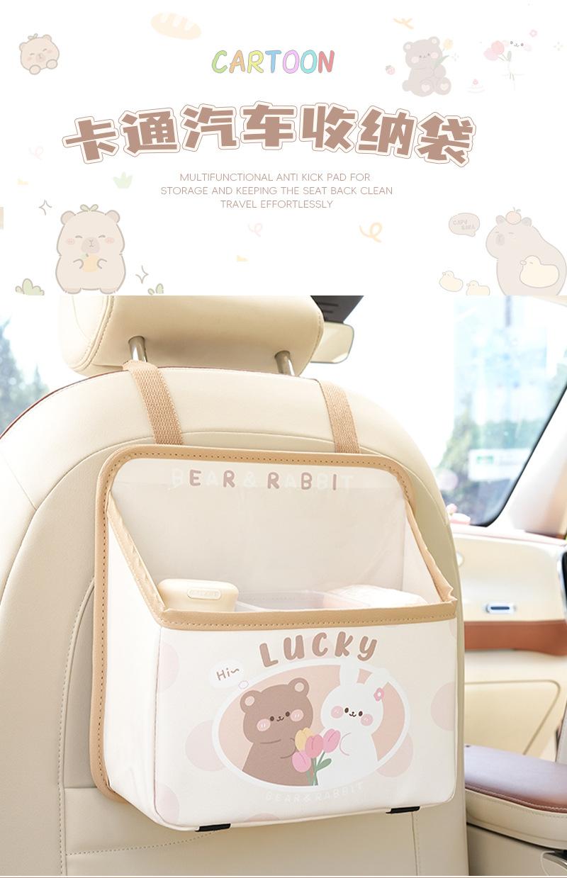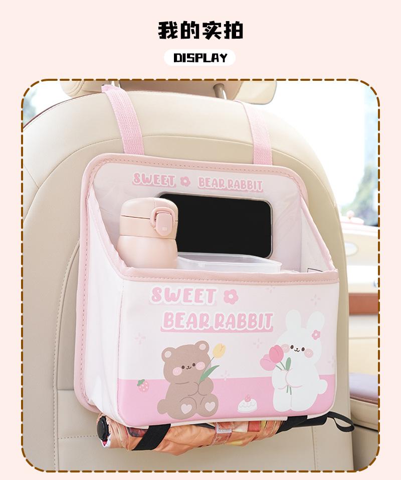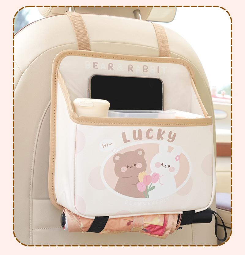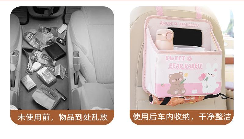 Bolsa de almacenamiento para el respaldo del asiento de coche de dibujos animados, bolsa creativa para guardar cajas de pañuelos de coche, papelera de coche multifuncional de cuero