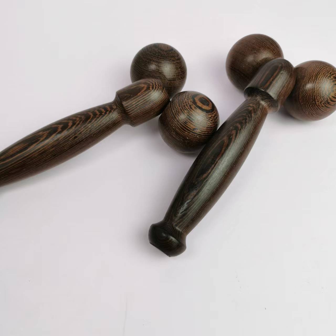 Masajeador de Madera de Ala de Pollo con Doble Bola Rodillo Meridiano Acupunto Adelgazamiento Facial Palo de Masaje Madera Sólida Rueda de Tracción Suministro Venta al por Mayor