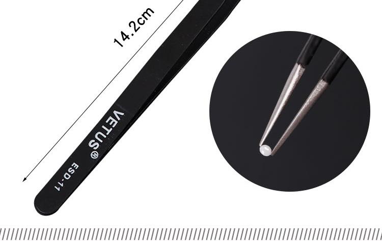 Black tweezers (elbow) for small drill clip