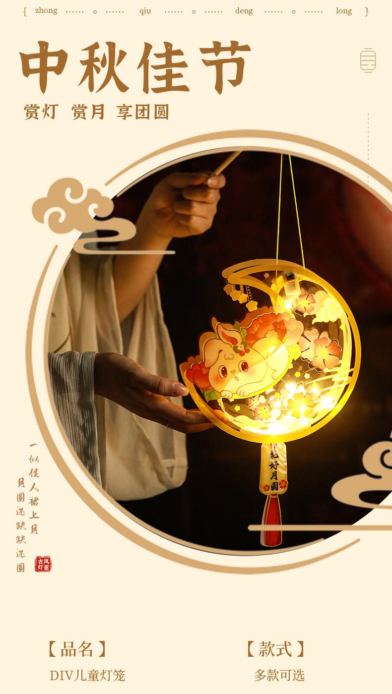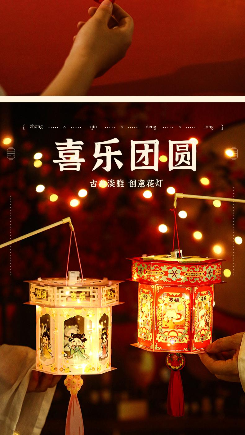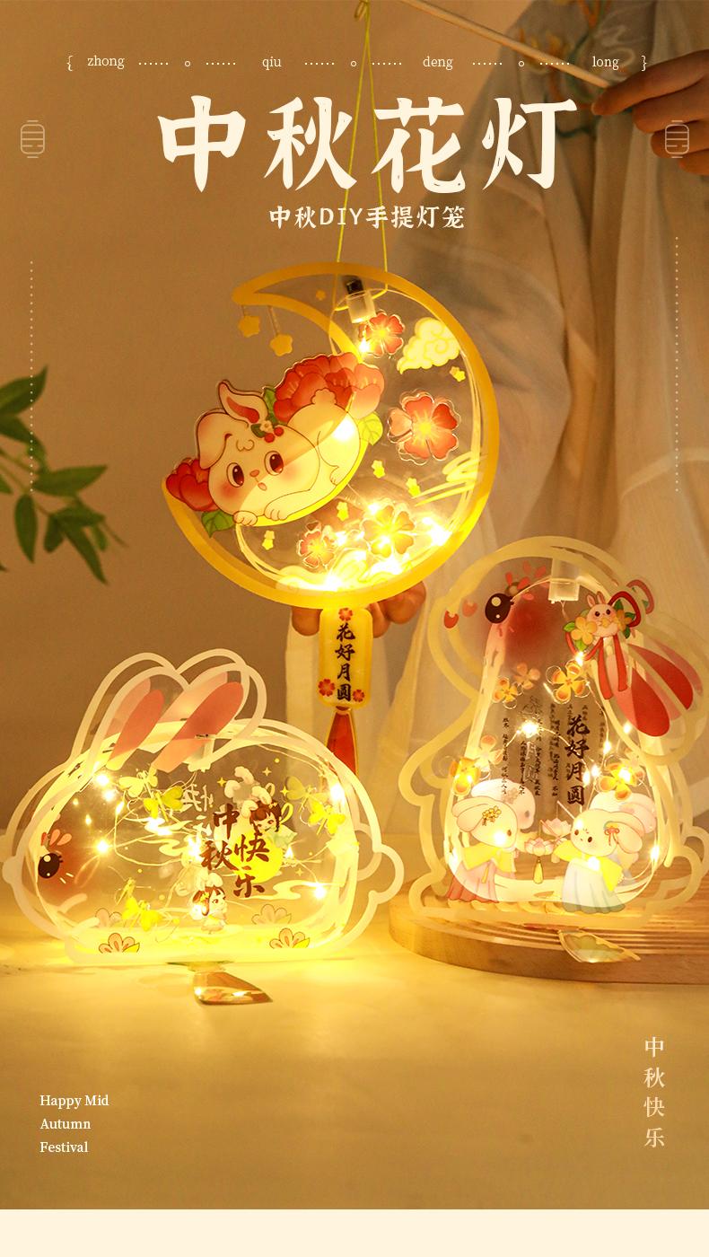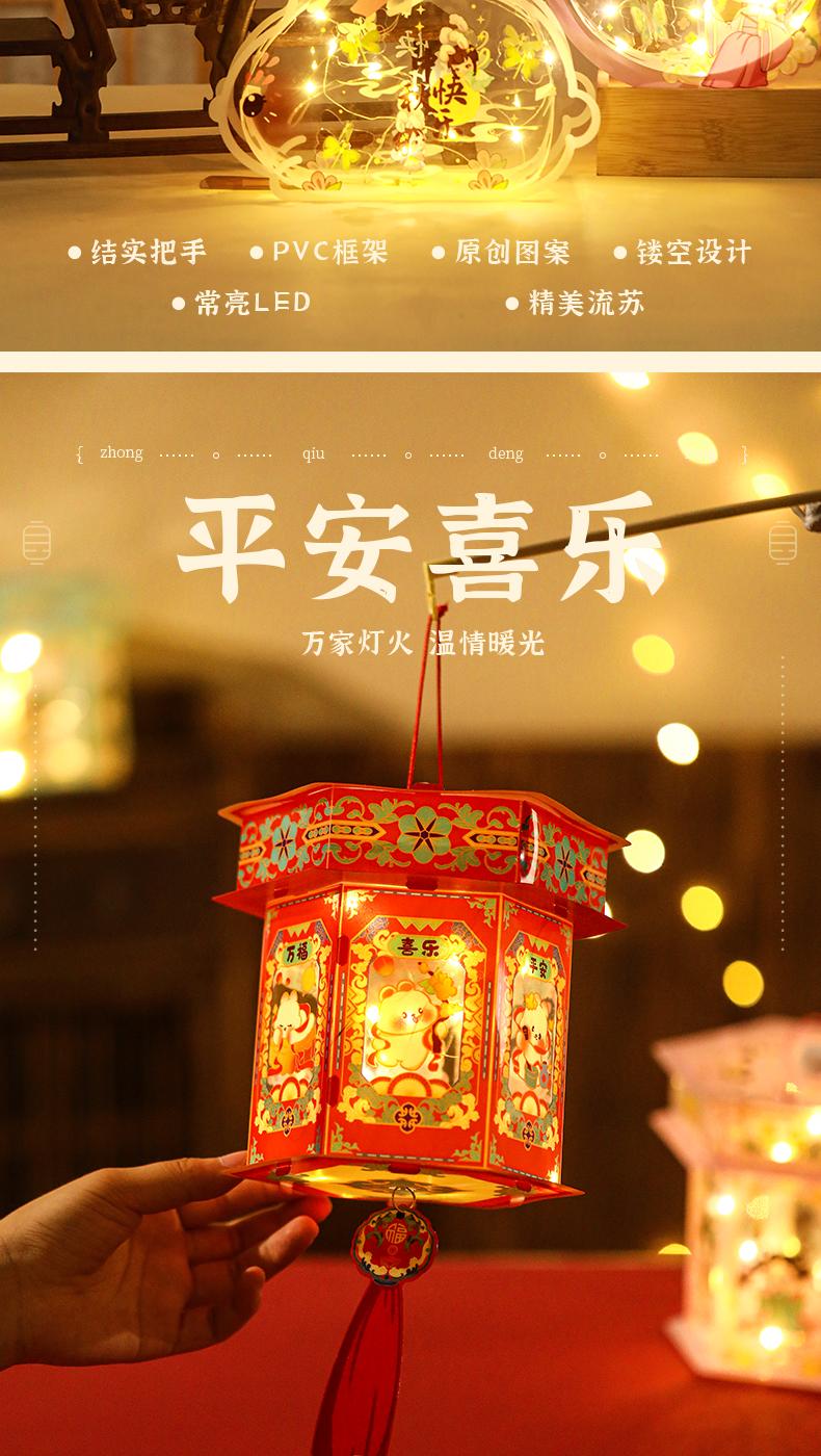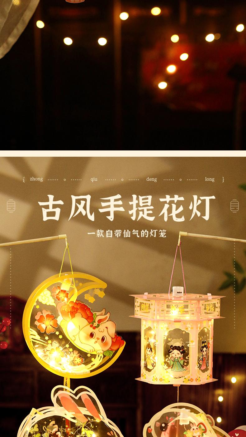 Festival del Medio Otoño Linterna Linterna de Conejo Linterna Portátil Luminosa para Niños Estilo Antiguo Linterna de Palacio Paquete de Materiales DIY Estilo Nuevo 2024