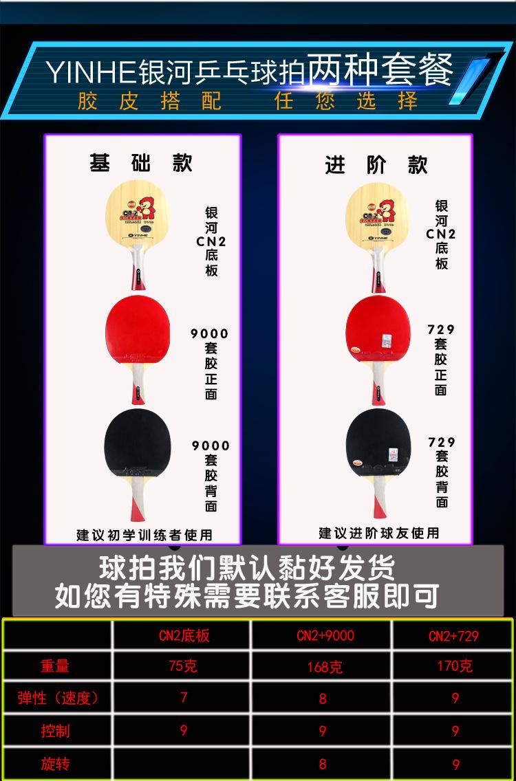 CN2 primary version straight plate + 9000 sets of rubber + racket cover 1 edge guard 2 protective film 1 sponge wipe 3 balls