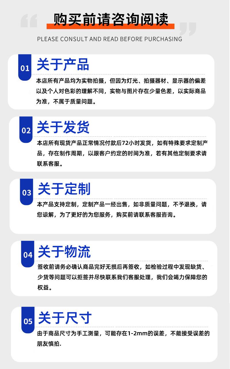 4. Debido a la gran cantidad de especificaciones del producto, es imposible calcular con precisión el flete.Comuníquese con el servicio de atención al cliente para modificar la tarifa de envío después de realizar el pedido.