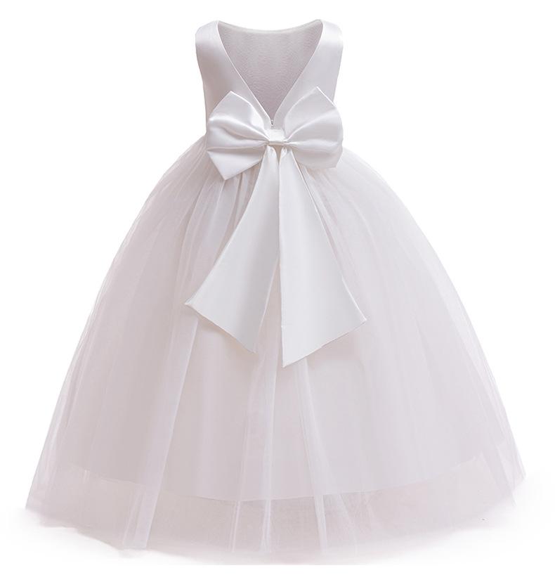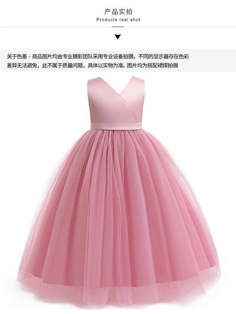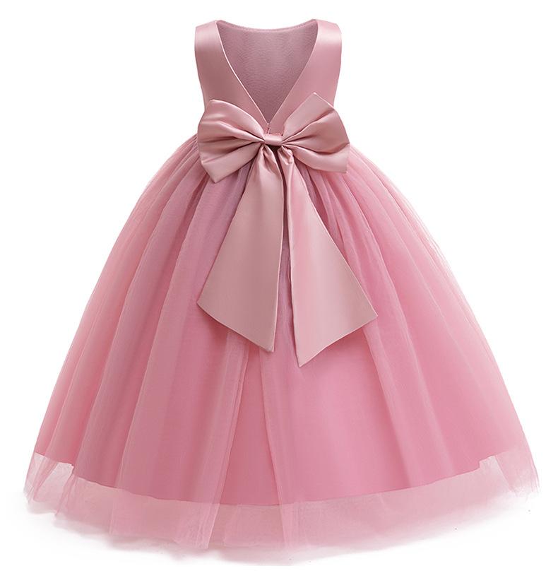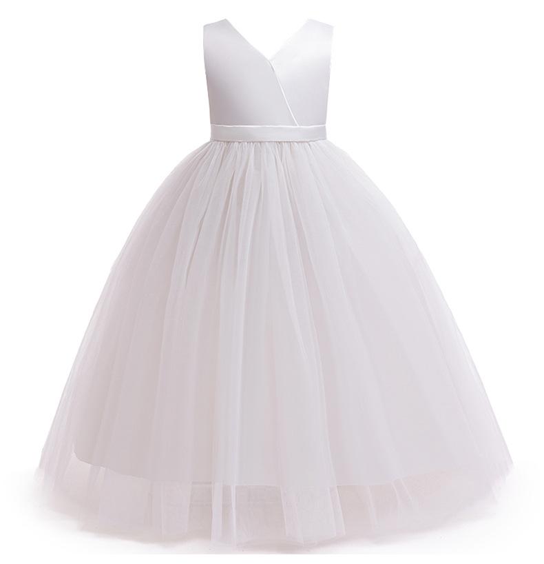 Ins Nuevo Vestido de Lazo para Niñas Falda Larga Vestido de Dama de Honor Boda Fiesta Actuación Vestido Estilo Princesa
