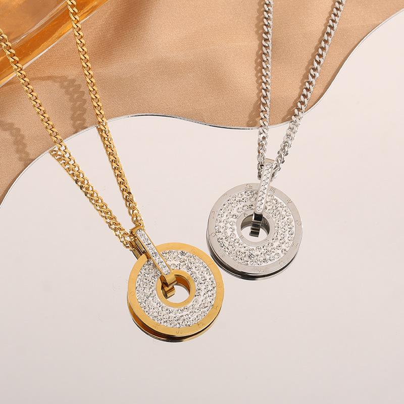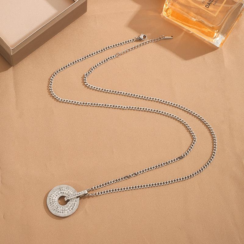 Compra Collar geométrico de acero de titanio con incrustaciones de diamantes de alta calidad de moda transfronteriza para mujer, colgante ligero de lujo con diseño de nicho, cadena de suéter larga de moda al por mayor en Joom.pro