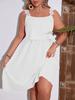 Vestido elegante de cuello cuadrado para mujer, de talla grande europea y americana, estilo transfronterizo, nuevo vestido de verano con cintura alta, estilo jersey, falda tipo A con tirantes.