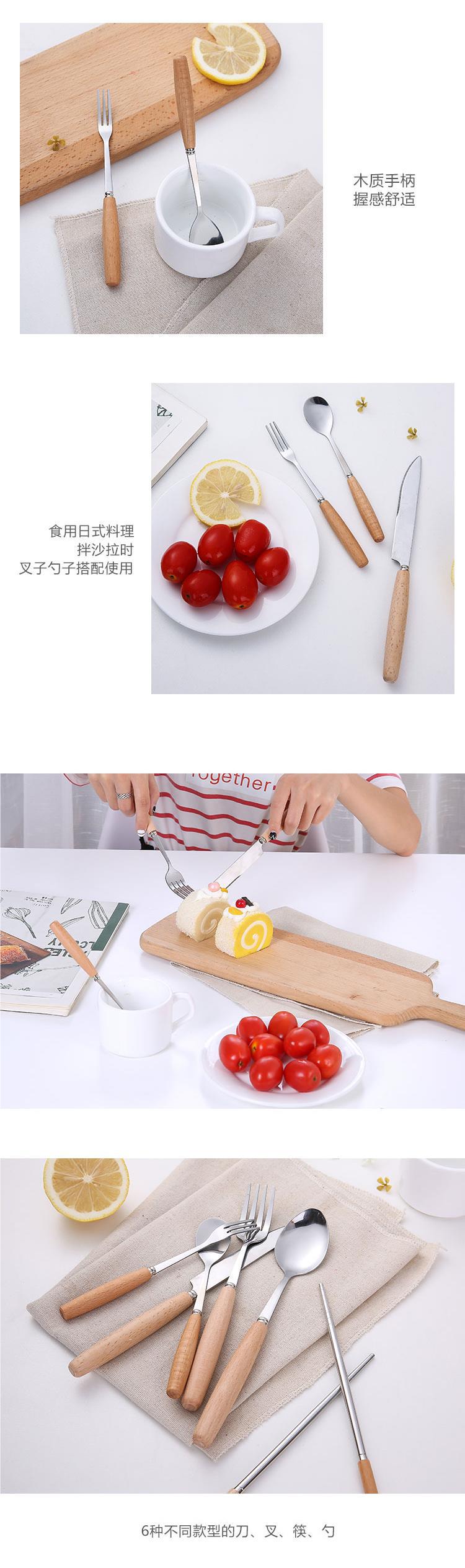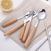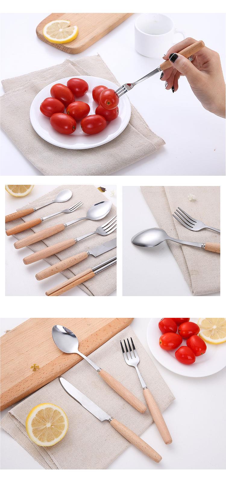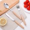 Creativo mango de madera acero inoxidable cuchillo tenedor tenedor de fruta cubiertos para bistec occidentales cuchara tenedor cuchillo mango de madera cuchara para sopa palillos