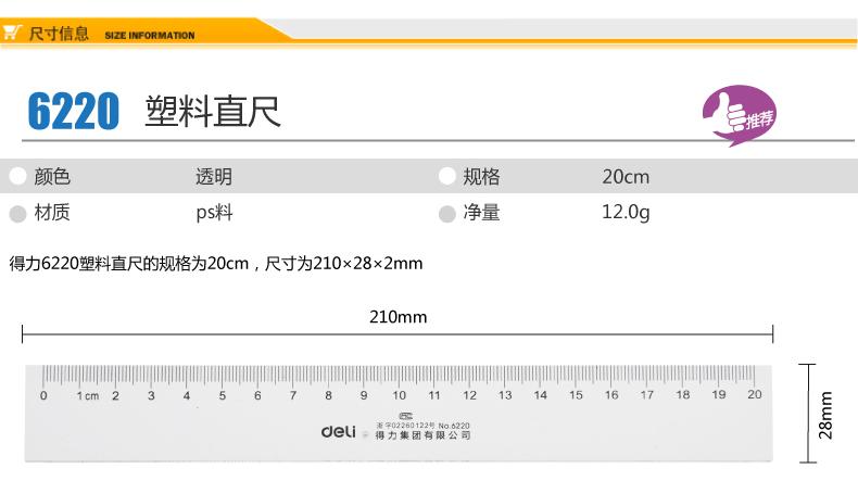 Deli Regla de Escala de Alta Definición de 20 cm 6220 Regla de Precisión Regla para Estudiantes y Oficina Papelería al por Mayor