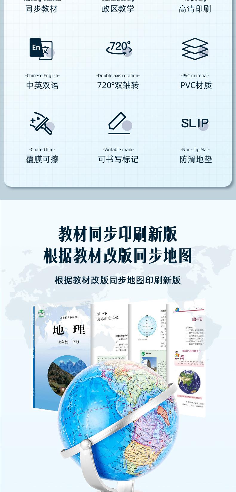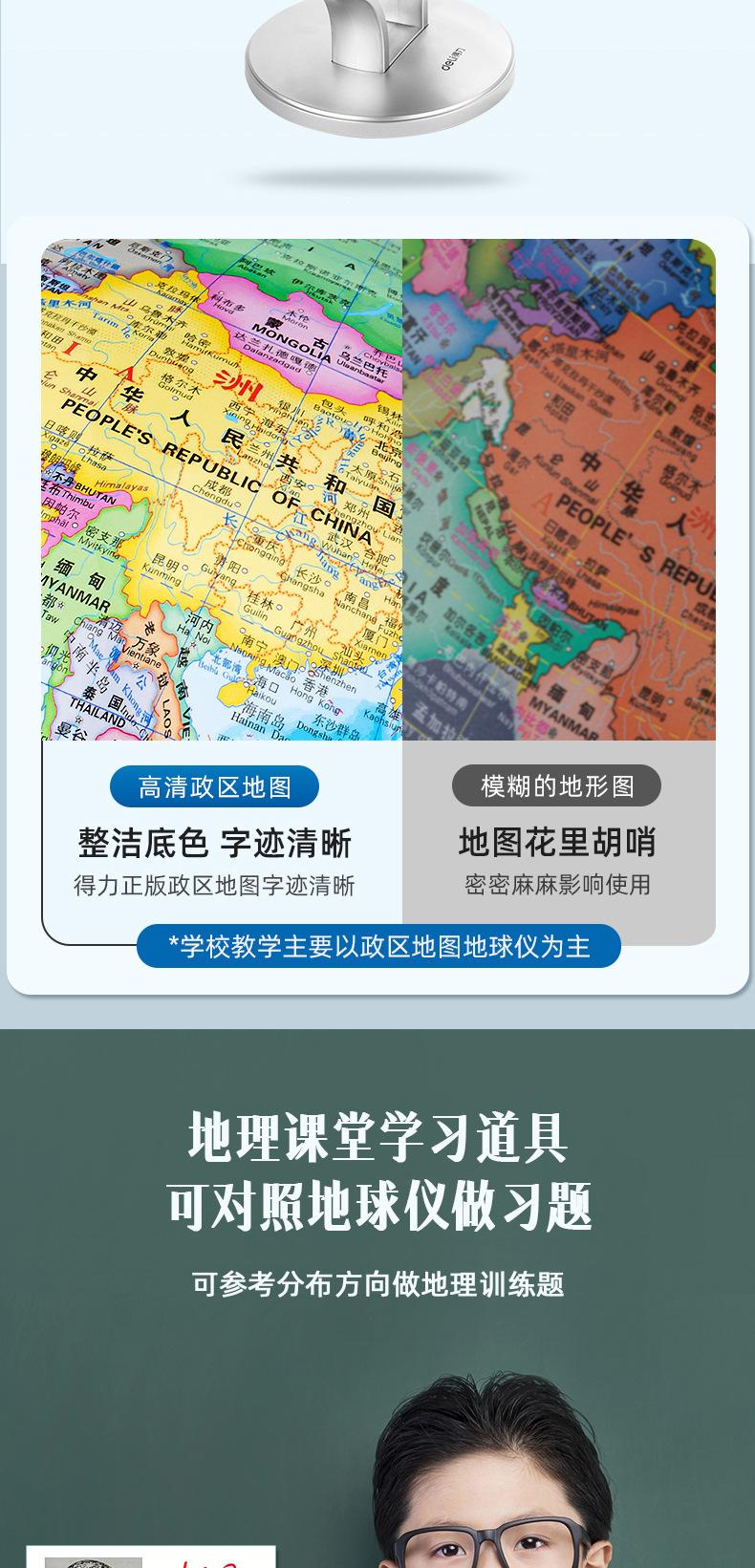 Adornos didácticos universales giratorios de alta definición para exhibición de geografía, para estudiantes de secundaria y primaria, Deli Globe