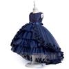 Vestido de princesa para niñas transfronterizas, vestido de princesa para niñas medianas y grandes, con lazo de flores bordado en el lateral, falda de cola de golondrina, vestido de pasarela para festival infantil