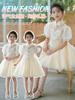 Vestido estilo palacio para niñas de estilo europeo y americano, nuevo vestido de princesa con mangas abullonadas y lazo, disfraz de actuación para festivales de niñas pequeñas