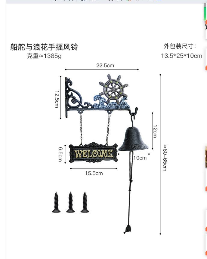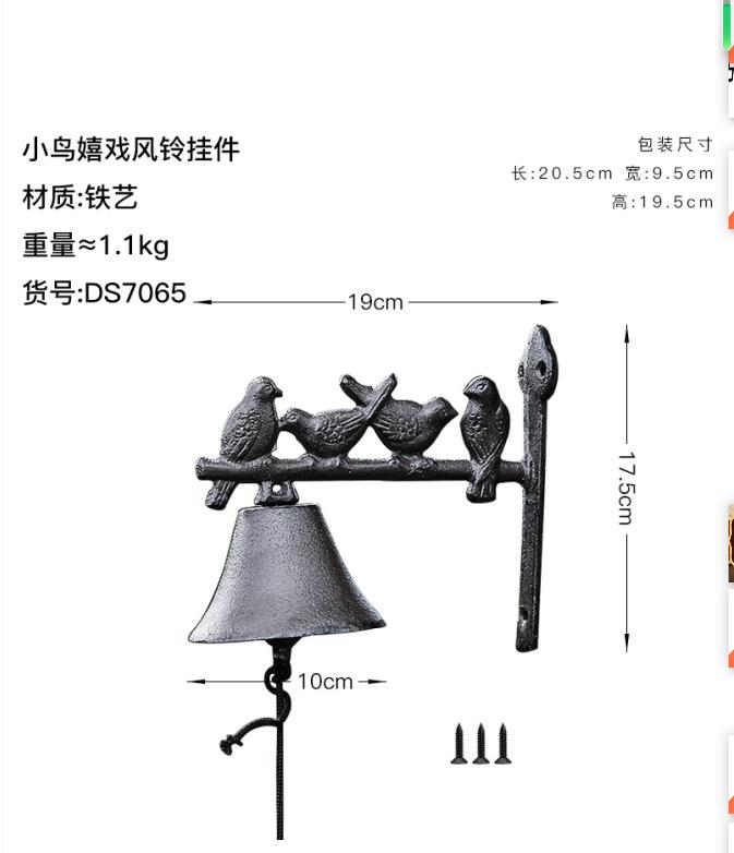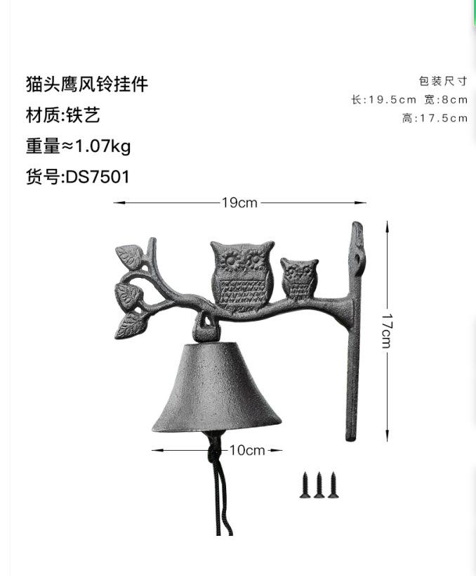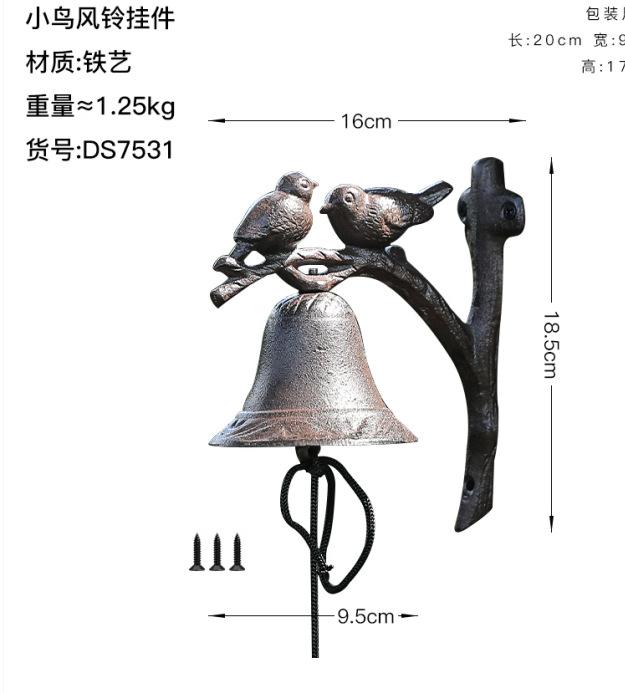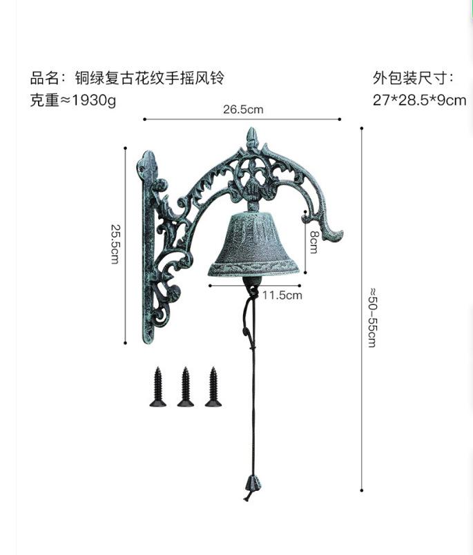 Timbre de Puerta de Hierro Forjado Vintage Estilo Campo Americano Campana de Hierro Fundido Carrillón de Viento Manual Puerta Principal Café Hogar Decoración de Balcón