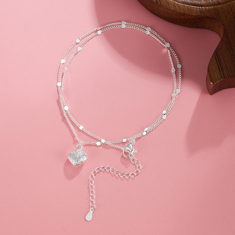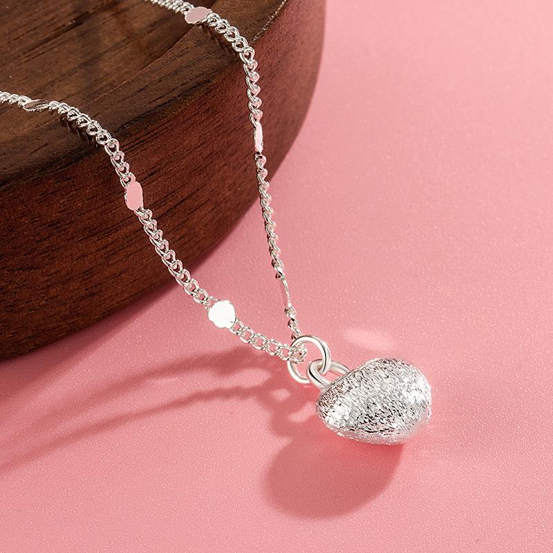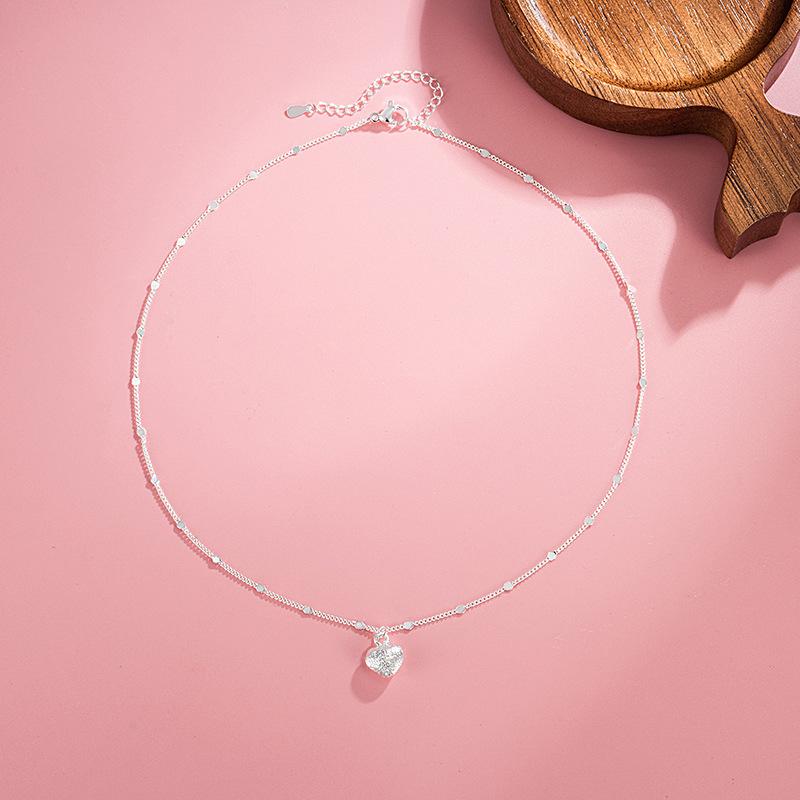 Collar de plata cepillada con forma de corazón para niña, colgante sencillo de nicho, cadena de clavícula de alta gama, exquisita y combinable.