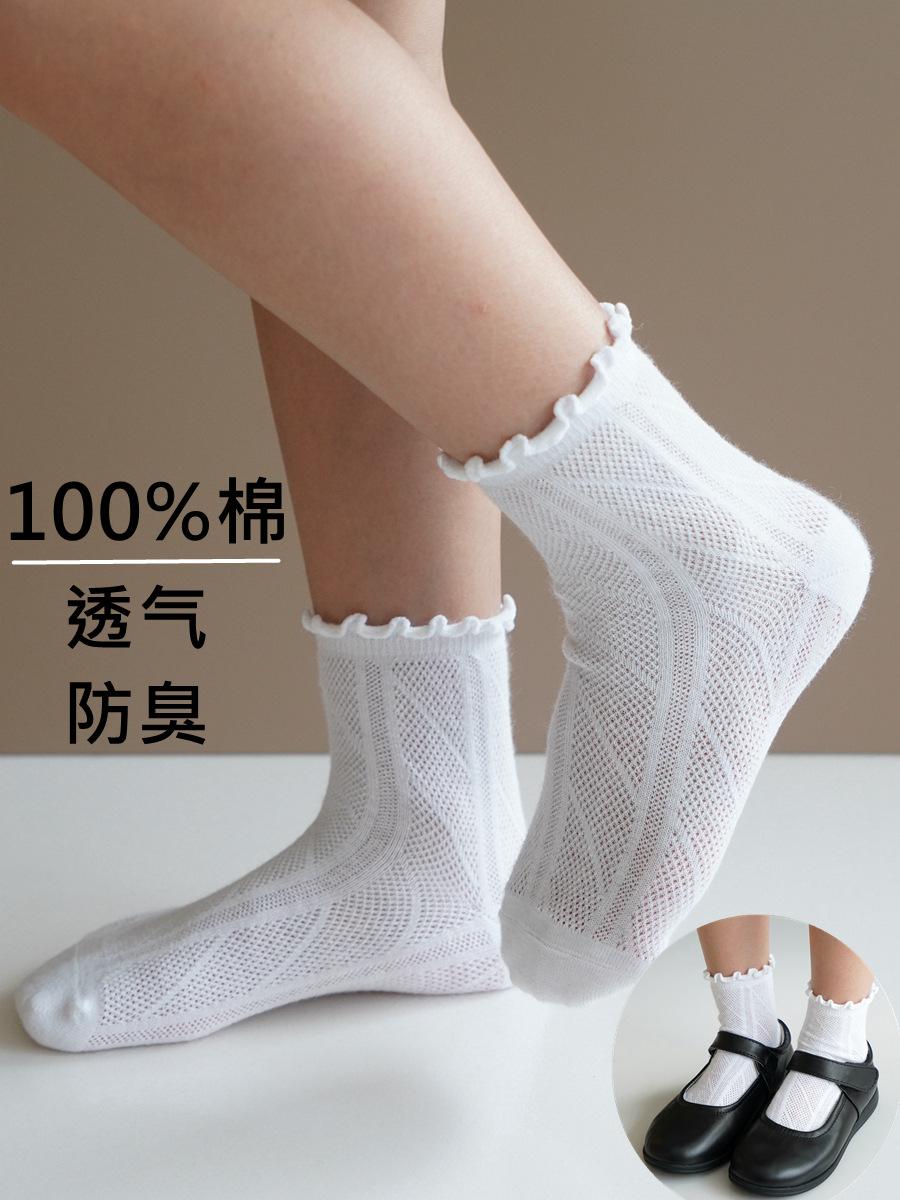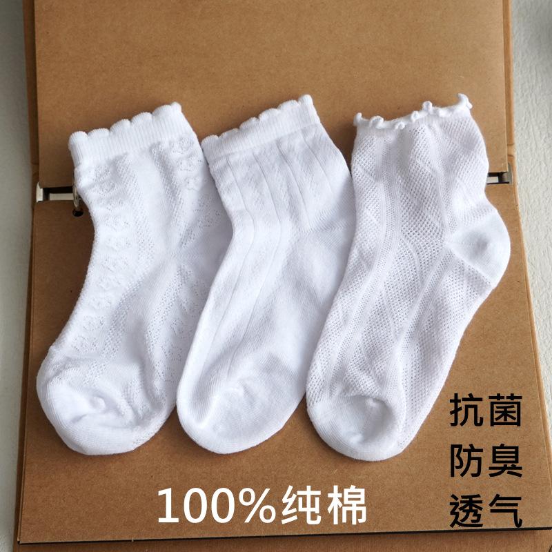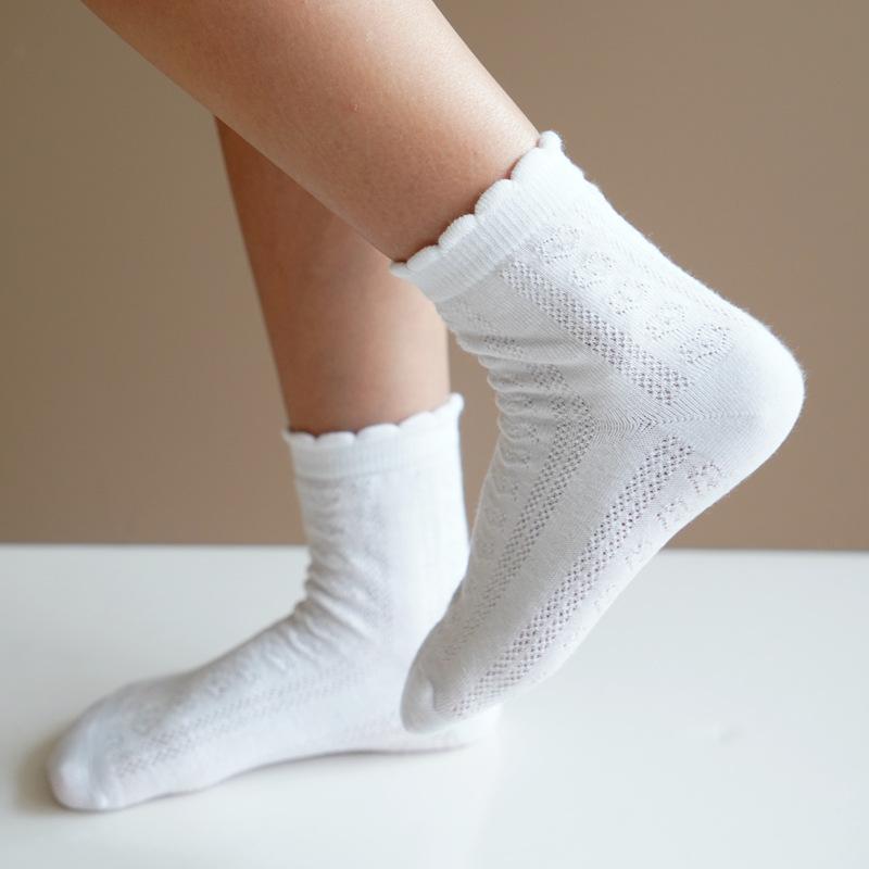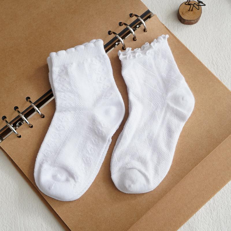 Calcetines de primavera y otoño para niños calcetines blancos de algodón de malla delgada calcetines blancos de encaje para niñas 100% algodón calcetines hasta la mitad de la pantorrilla al por mayor
