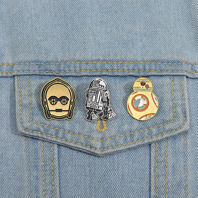 Broche de insignia metálica periférica de anime japonés de dibujos animados, insignia de regalo de recuerdo periférica de robot de Star Wars