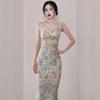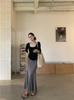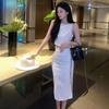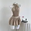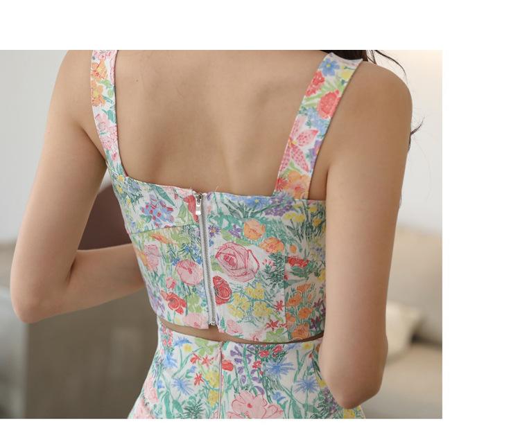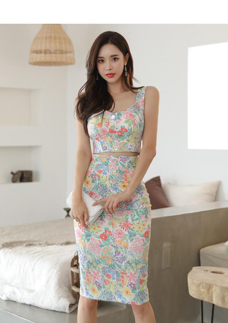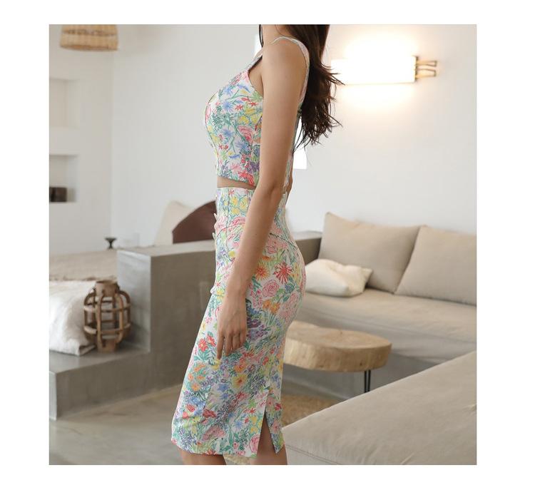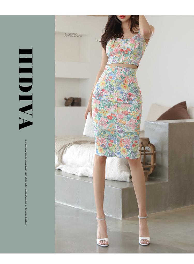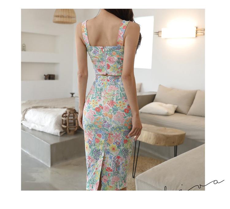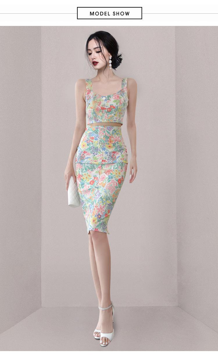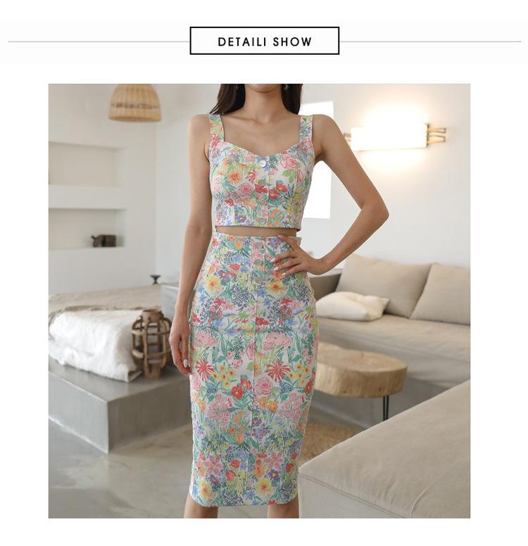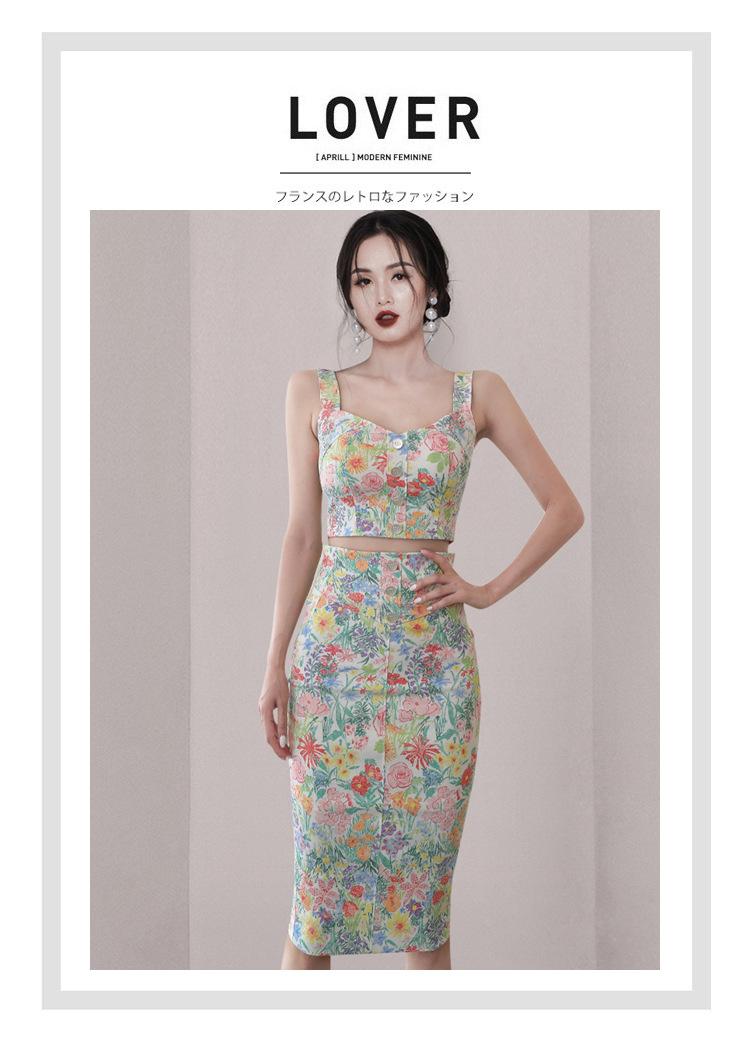 Conjunto de Dos Piezas Estampado de Temperamento Dulce Verano 2024 Nuevo Top Halter Corto con Ombligo Descubierto Falda Tubo de Cintura Alta que Cubre las Caderas