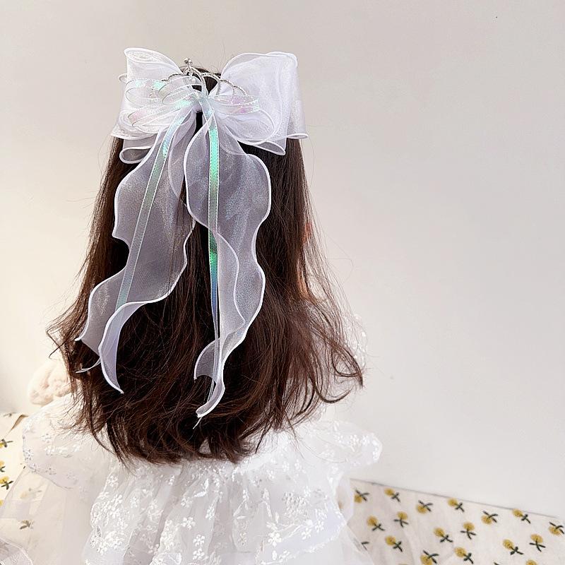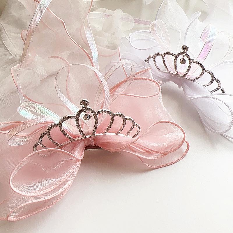 Nueva corona de estilo princesa coreana con incrustaciones de diamantes para niñas, lazo de gasa, cinturón, accesorios para el cabello para niñas de las flores