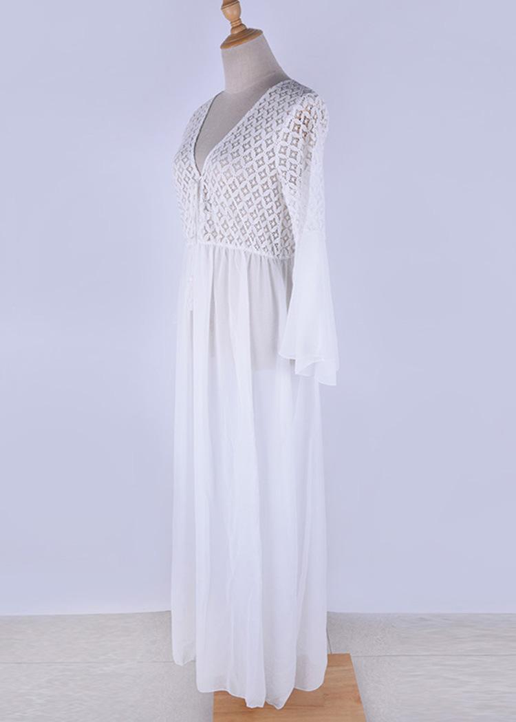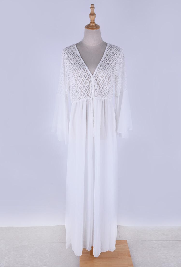 Gran oferta, nueva camisa de encaje de algodón en capas, estilo manga acampanada, para playa, protección solar, traje de baño, chaqueta, cárdigan femenino | |