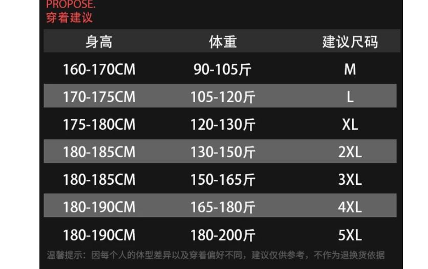 M, L, XL, 2XL, 3XL, 4XL, 5XL