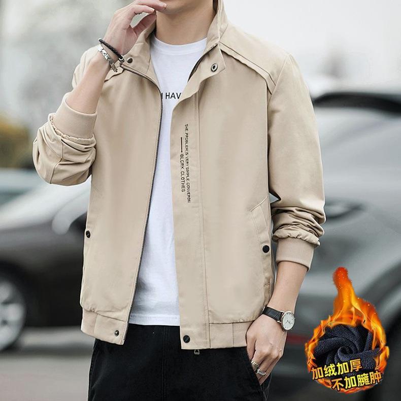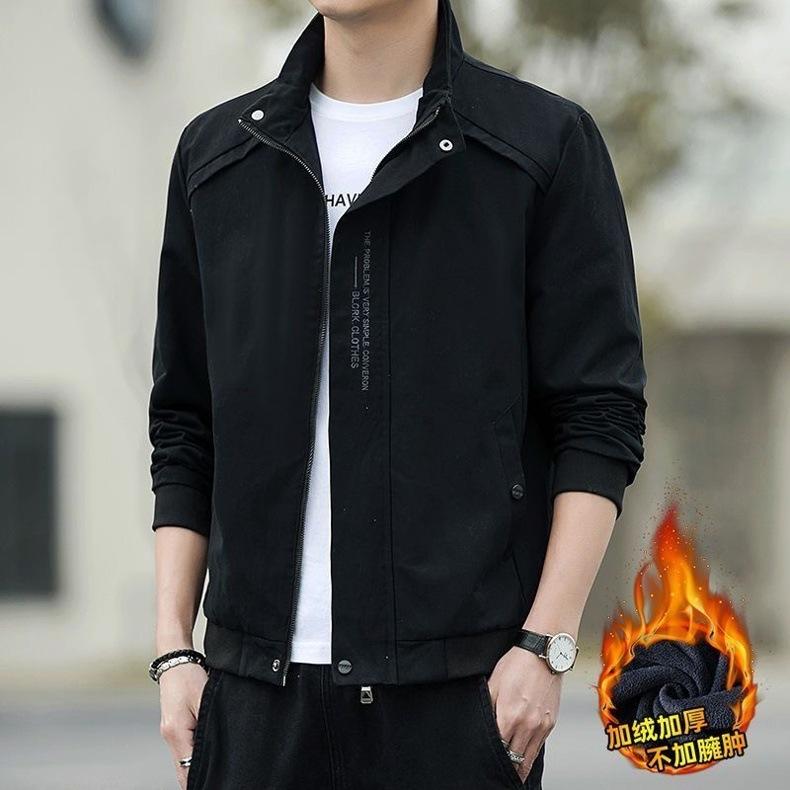 Chaqueta Casual de Moda de Primavera y Otoño con Cuello Alto para Hombre Estilo Coreano Holgada Top Invierno Terciopelo Ajustada Chaqueta Hombre