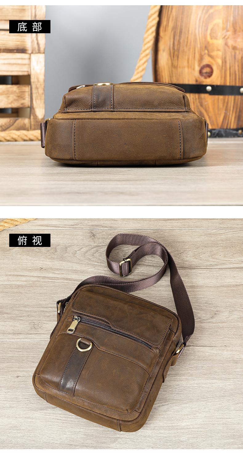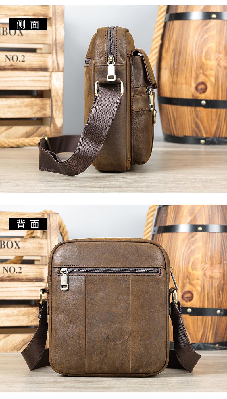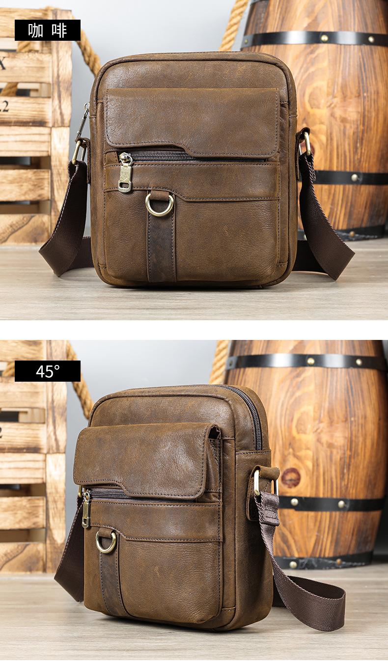 Bolso de cuero genuino para hombre, estilo retro, vertical, cuadrado, bandolera de piel de vaca de primera capa, pequeño, al por mayor