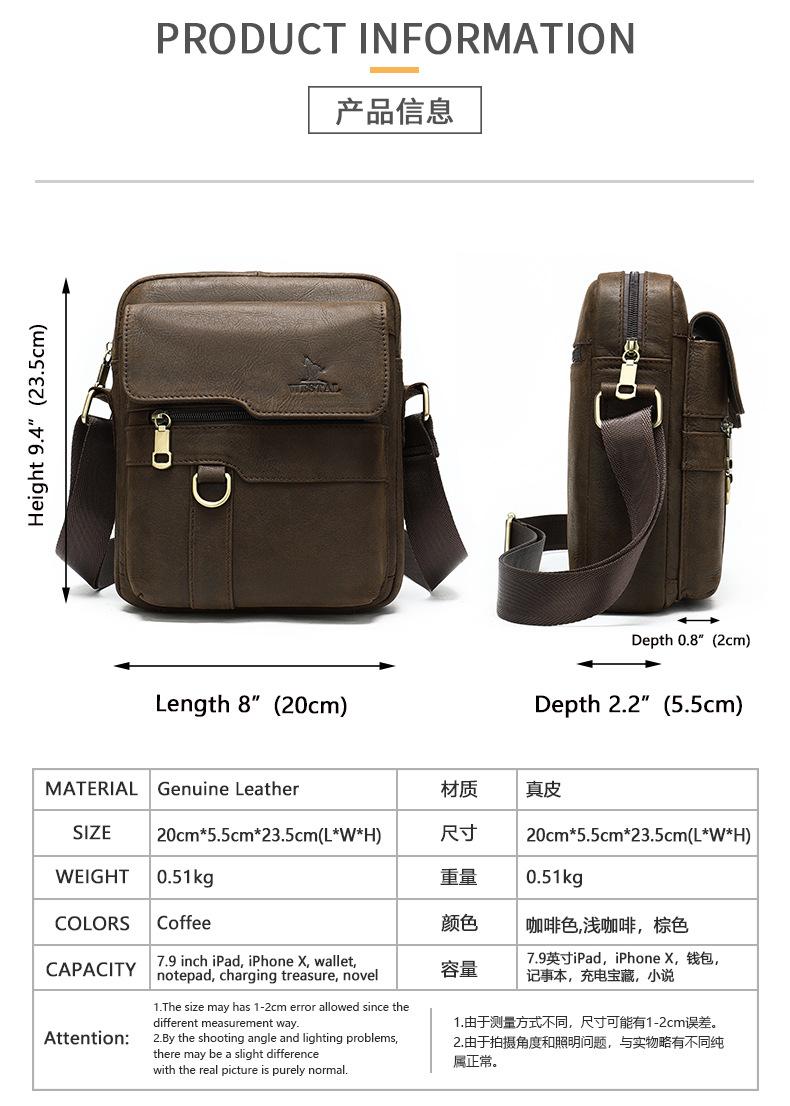 Bolso de hombro de cuero genuino para hombre, bolso retro de primera capa de piel de vaca, bolso bandolera vertical para iPad, venta directa de fábrica