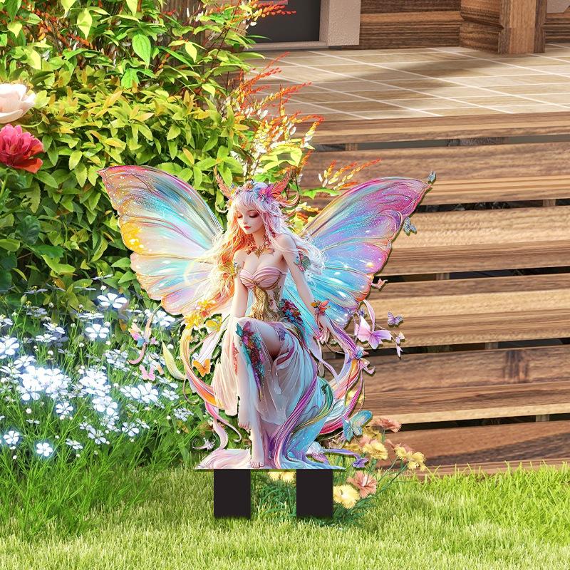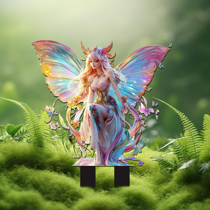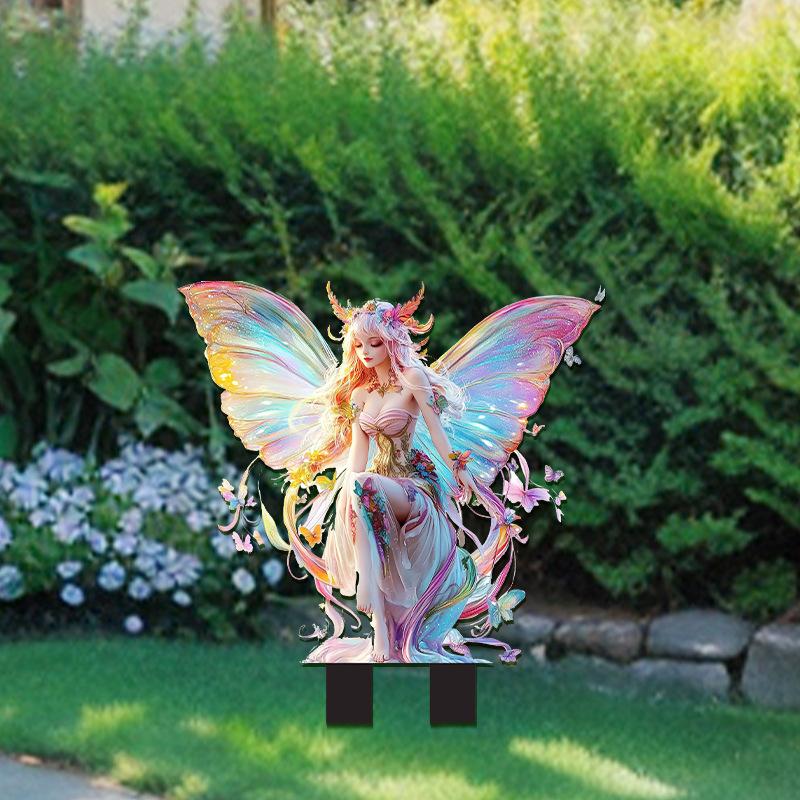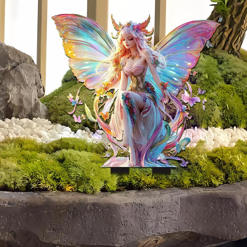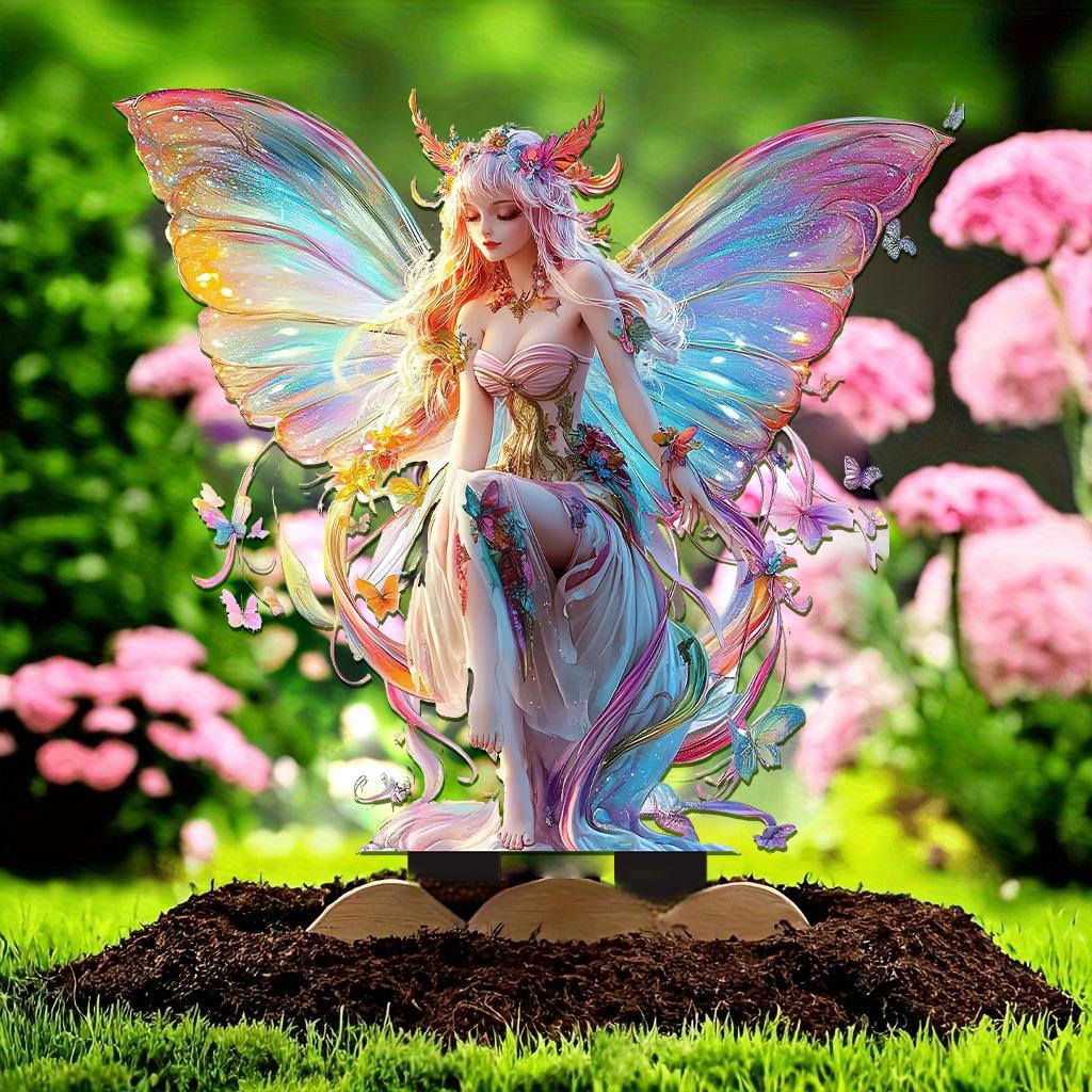 Maceta de acrílico con diseño de mariposas y hadas, encantadora y colorida, para jardín, patio, decoración de suelo
