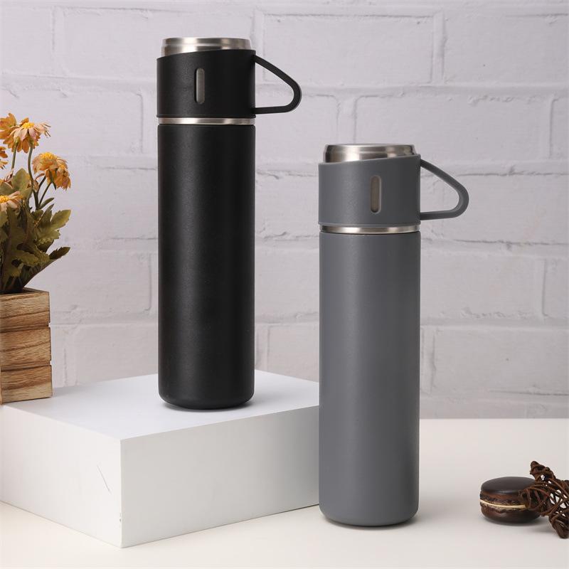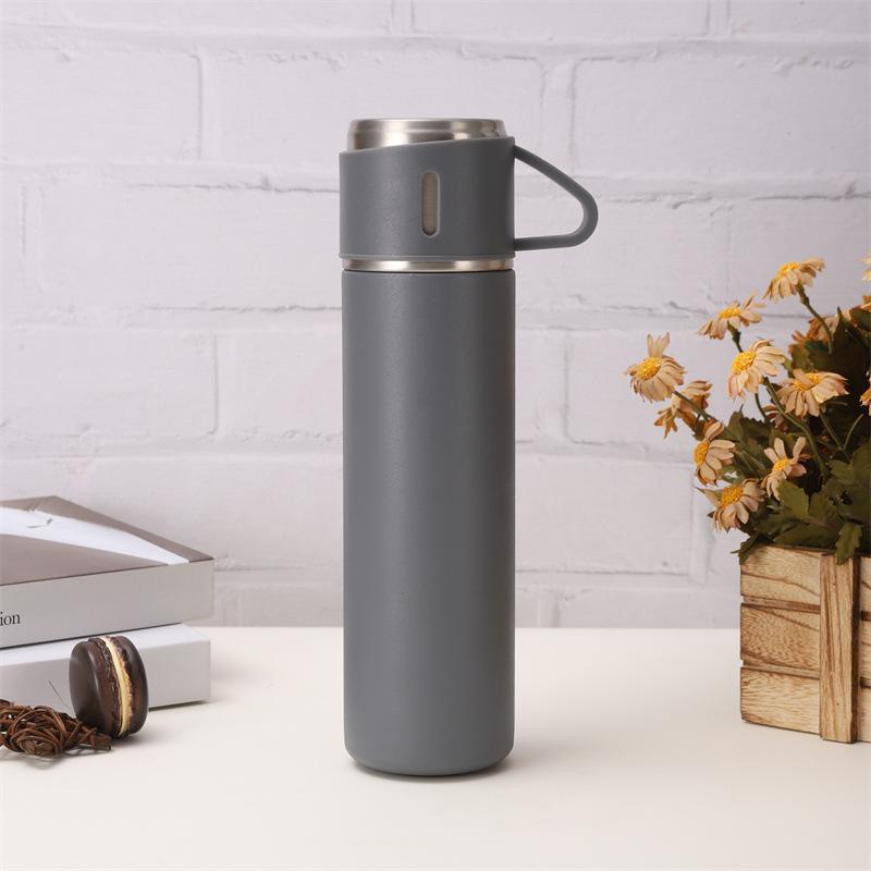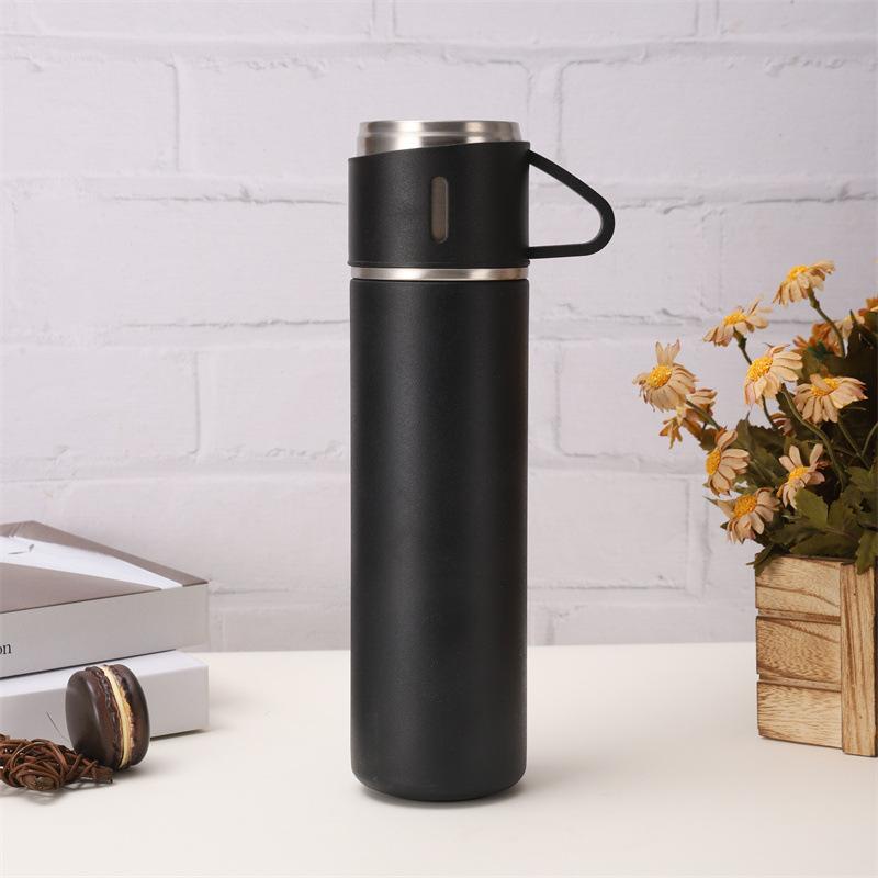 Taza Termo de Acero Inoxidable 304 con Tres Tapas para Exterior, Simple, Portátil, Taza de Agua con Asa, Vaso Recto de Vacío para Negocios, Caja de Regalo