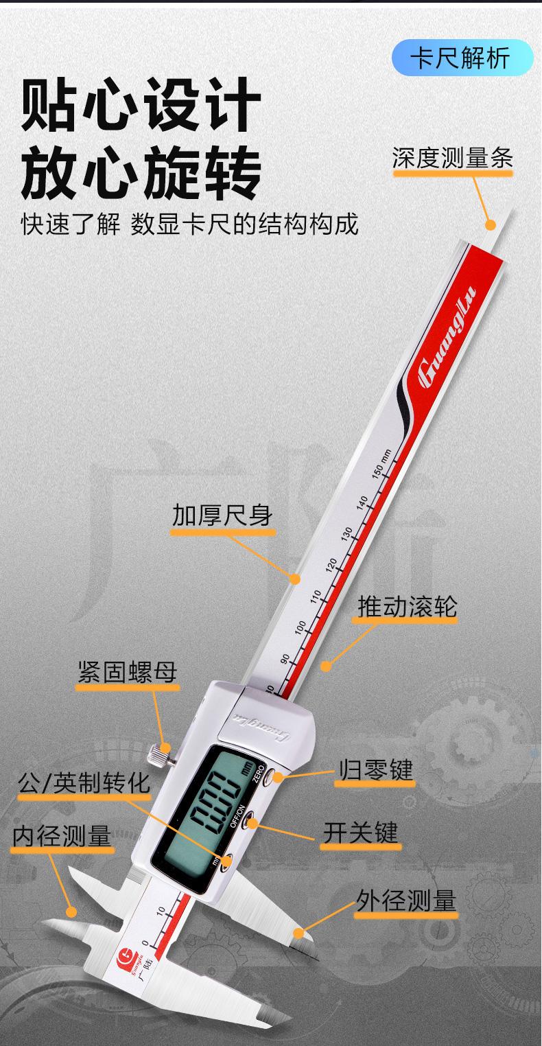 Compra Calibrador digital electrónico Guanglu de 0-150-200-300 mm, herramienta de medición de alta precisión, calibrador Vernier de acero inoxidable mini. al por mayor en Joom.pro