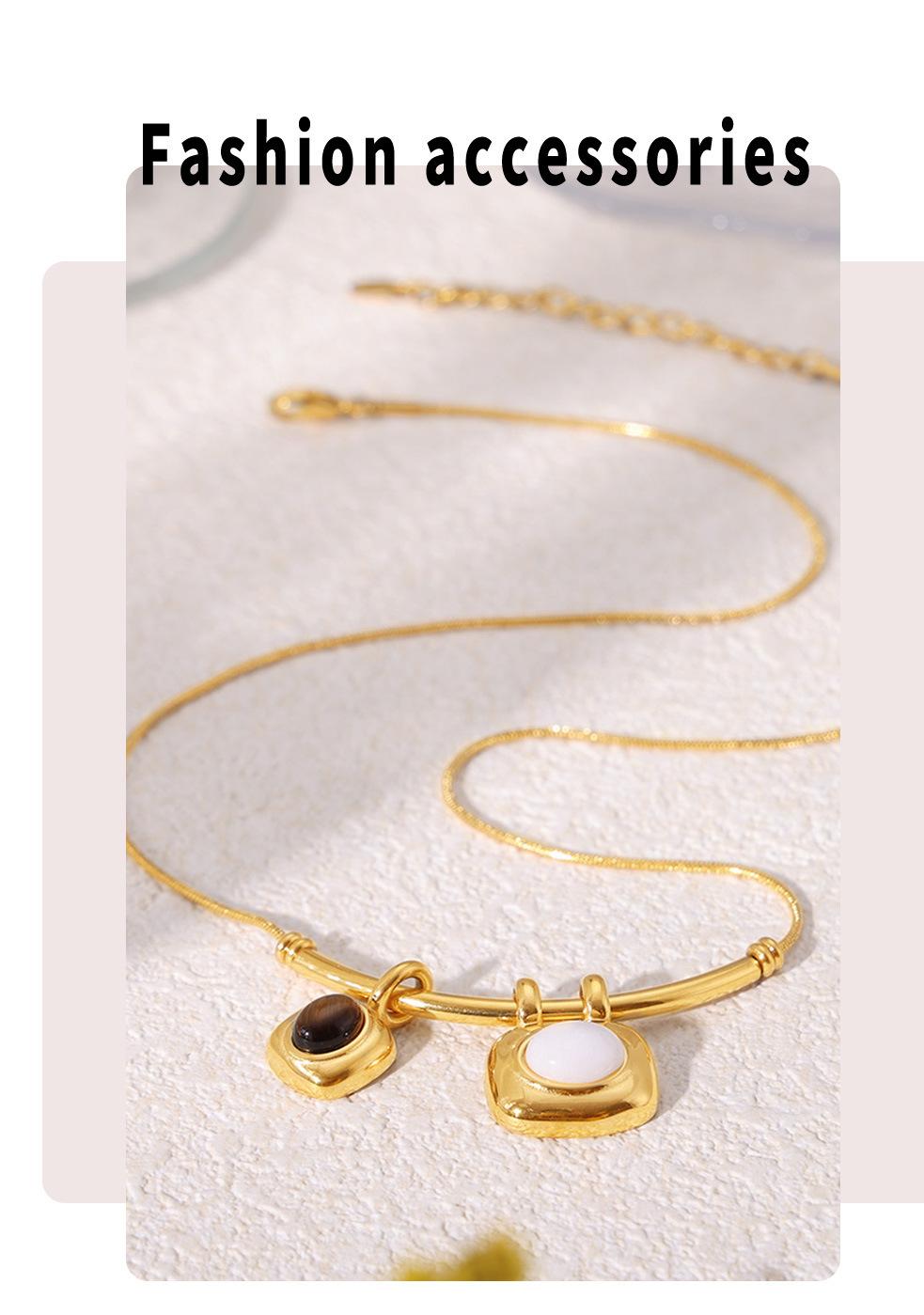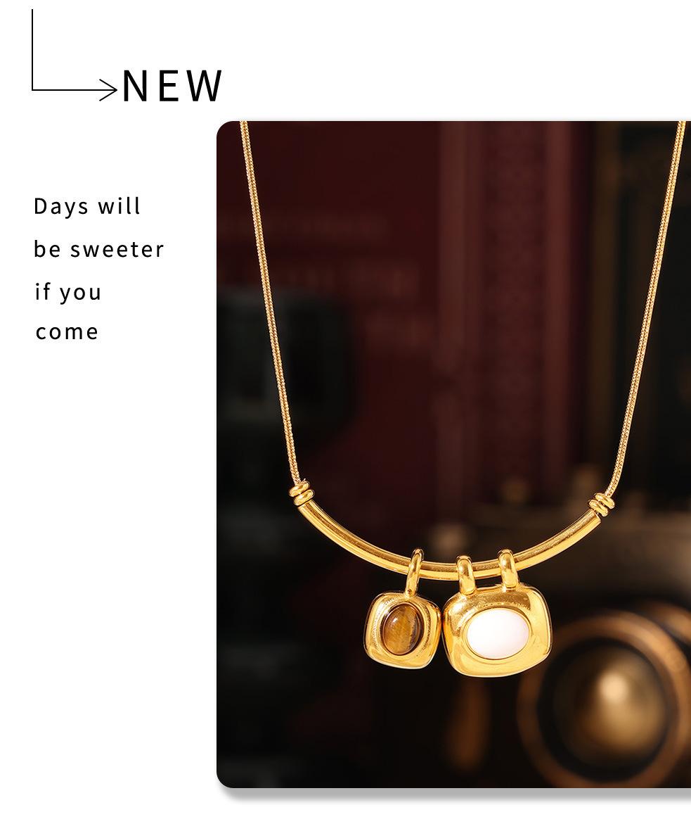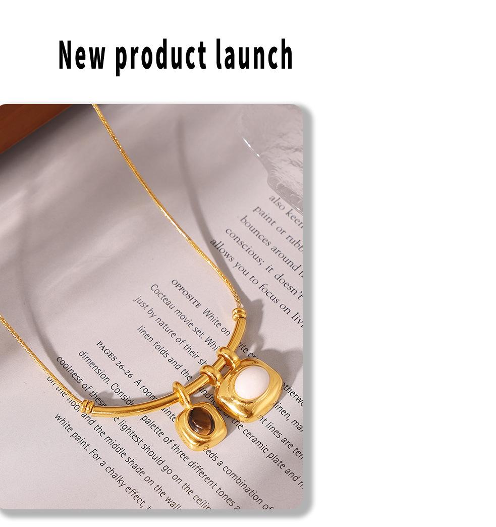 Collar con colgante cuadrado asimétrico bicolor estilo retro francés, chapado en oro de 18 quilates, estilo lujoso, sencillo, joyería de acero y titanio.