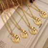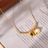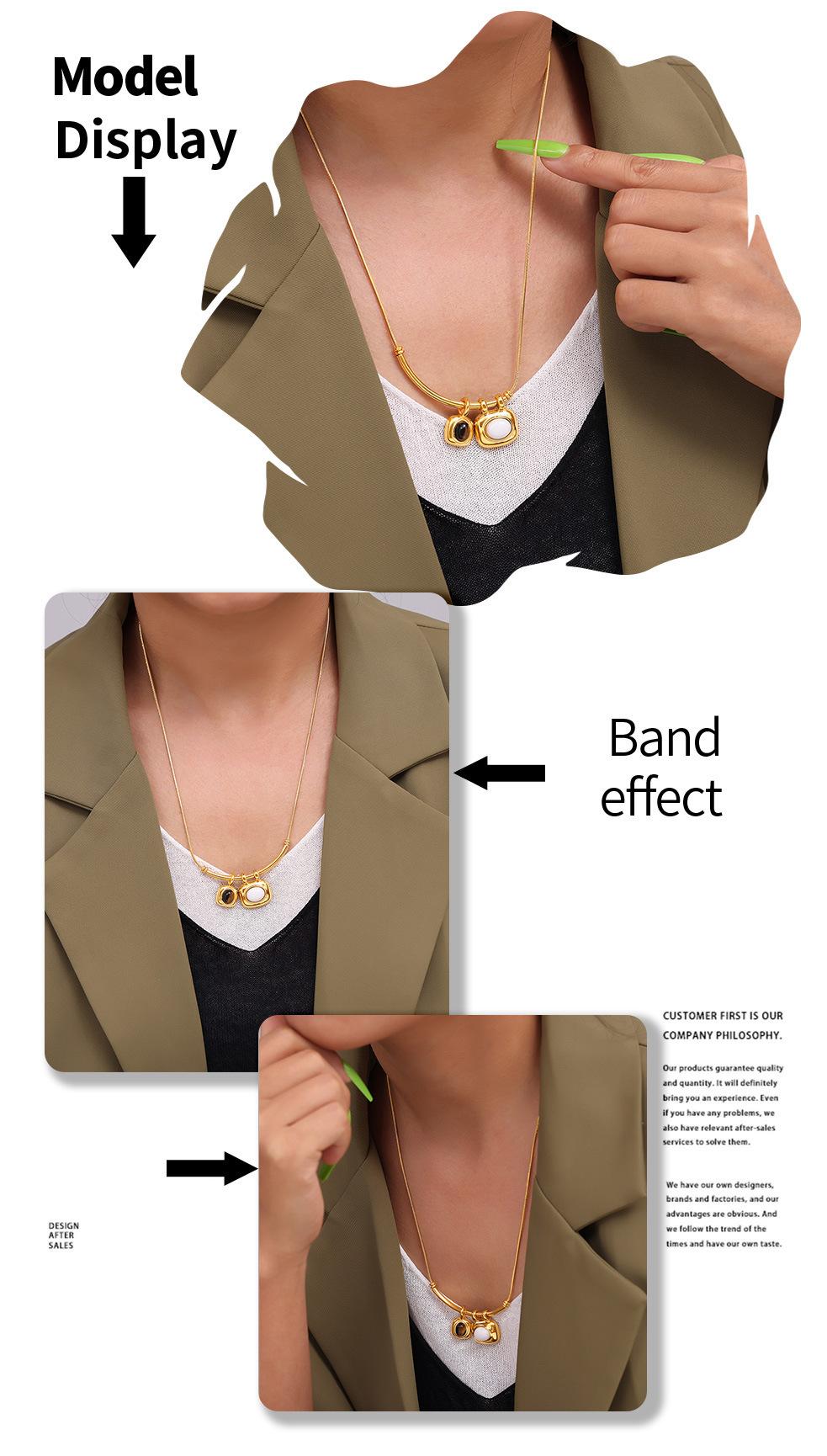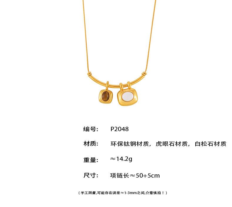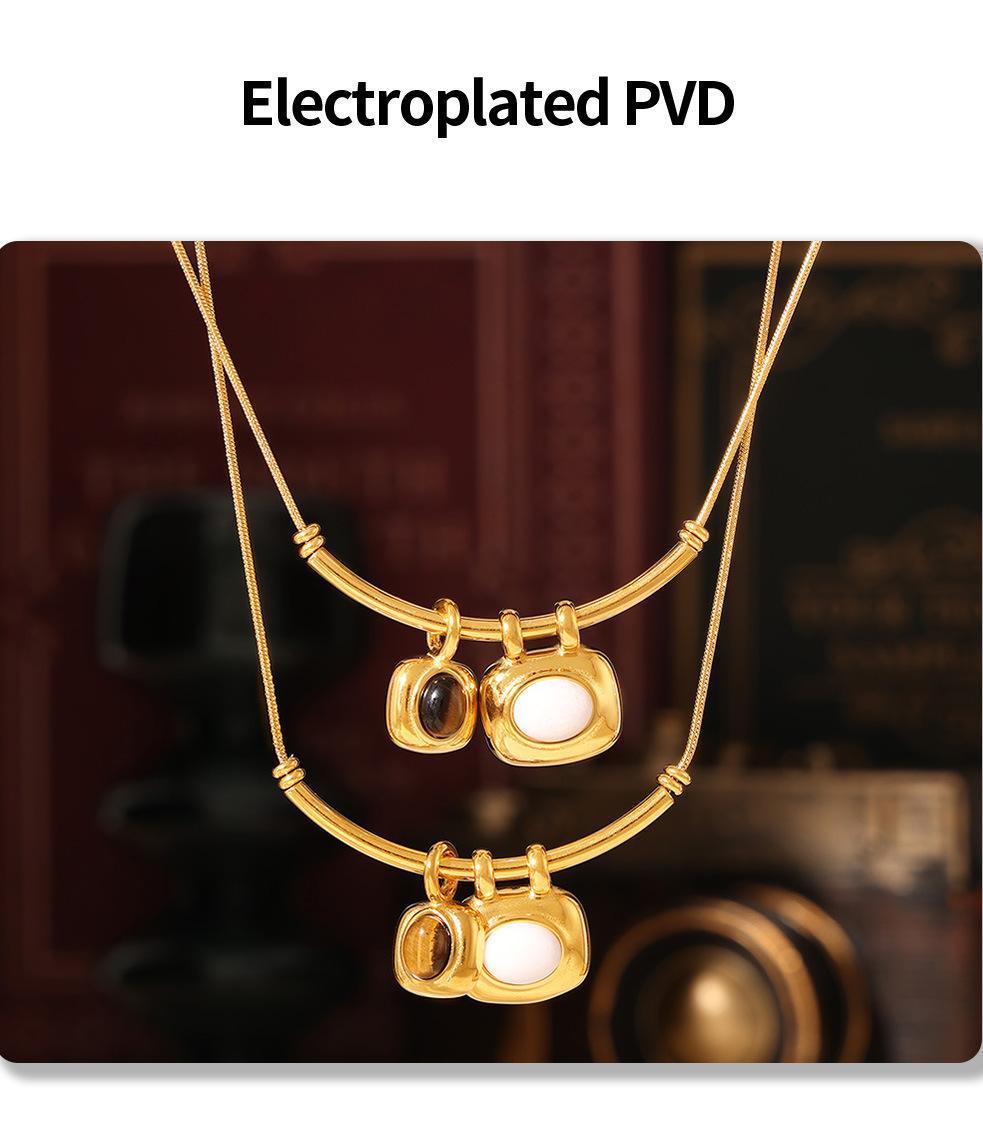 Collar con colgante cuadrado asimétrico bicolor estilo retro francés, chapado en oro de 18 quilates, estilo lujoso, sencillo, joyería de acero y titanio.