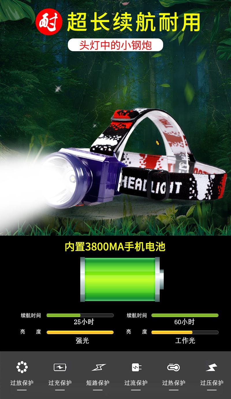 Linterna Frontal Jin Laoda K169 Resaltada Súper Larga Duración Luz Fuerte Batería de Litio Montada en la Cabeza Impermeable Recargable por USB Lámpara de Minero Pesca