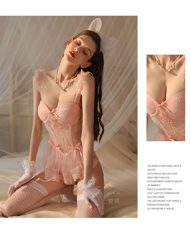 Pink [chest pad vest T pants] white net socks gloves headdress