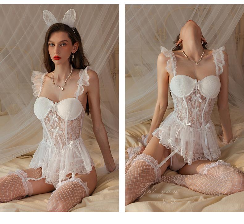 Ropa interior sexual de gardenia pecho pequeño muestra almohadilla de pecho grande encaje perspectiva traje chaleco camisola camisa al por mayor 8007