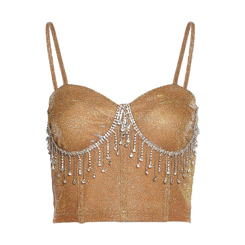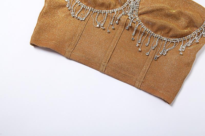 Compra Chaleco pequeño ajustado con cuello de tirantes y borlas de diamantes de imitación para mujer, estilo europeo y americano, primavera y verano 2022 al por mayor en Joom.pro